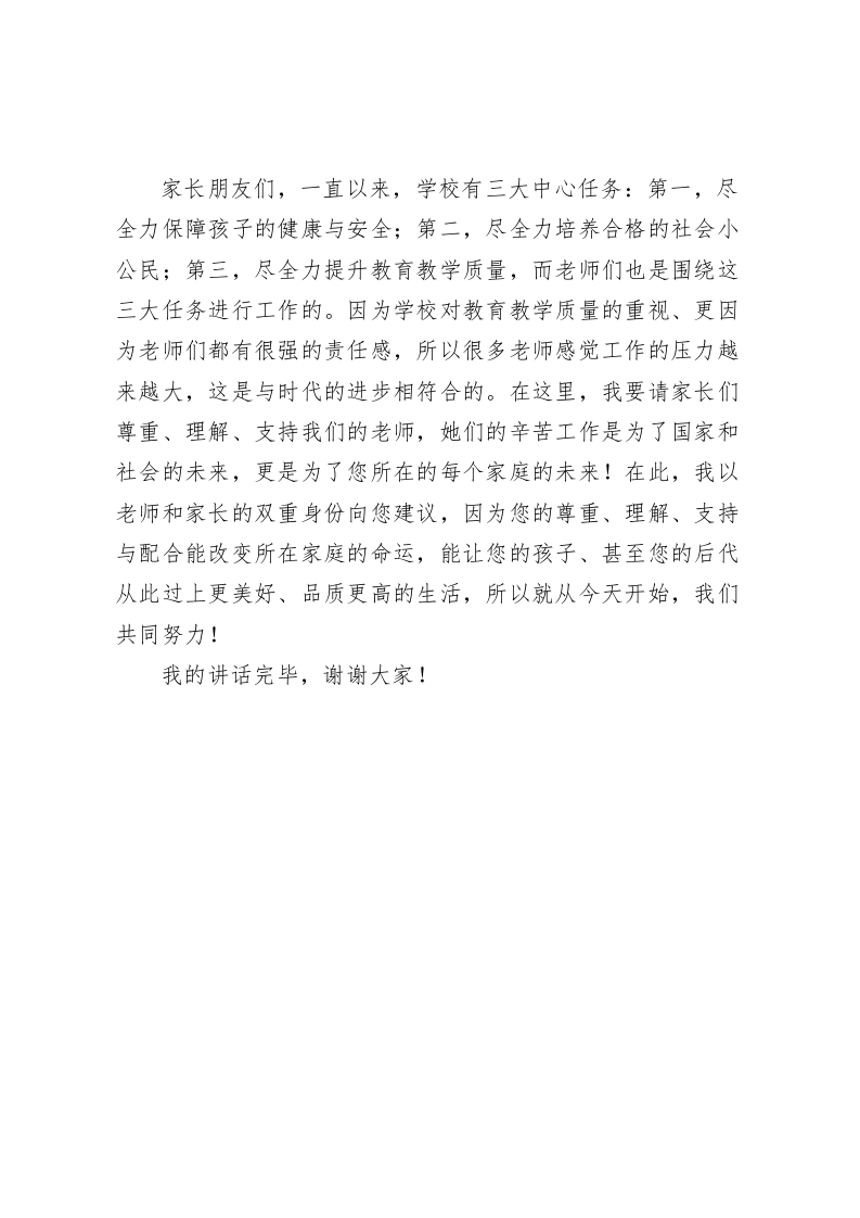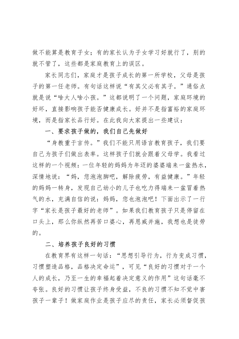 校长在家长会上讲话家庭环境的好坏,直接影响孩子能否健康成长,好并不是指富裕的家庭环境,而是指家长品行好各位家长:大家好!首先请允许我代表学校向各位家长的到来表示感谢!你们在百忙之中抽出时间来参加家长会,这就足以说明了两点,一是大家对学校工作的支持,更重要的是各位对孩子的关心。教育发展至此,开家长会已经形成了制度,学校需要经常与家长联系,我们坐在一起,是为了一个共同的目的,那就是为了孩子的健康成长,为了孩子们的前途。同时,也希望家长多了解我们学校,加强和学校之间的联系,配合学校,做好一些工作,让你的孩子学得更好,取得更好的成绩!下面我简单介绍一下我们学校现在的情况,有目共睹,这所学校现在所发生的变化可以说是天壤之别,以前的破房子,破桌椅板凳可以说是没有一丝痕迹了,取而代之的崭新的教室和统一标准的课桌凳,大家可以看随地看一看我们的教室、办公室、校园的环境,我们都在努力给师生们提供一个安全卫生的生活环境。各位家长!随着人们生活水平的提高,对子女的教育问题越来越成为一个重要问题了,现实生活中,许多家长不知道怎么教育子女,认为让子女们吃得好,穿得好就行了,其实这样