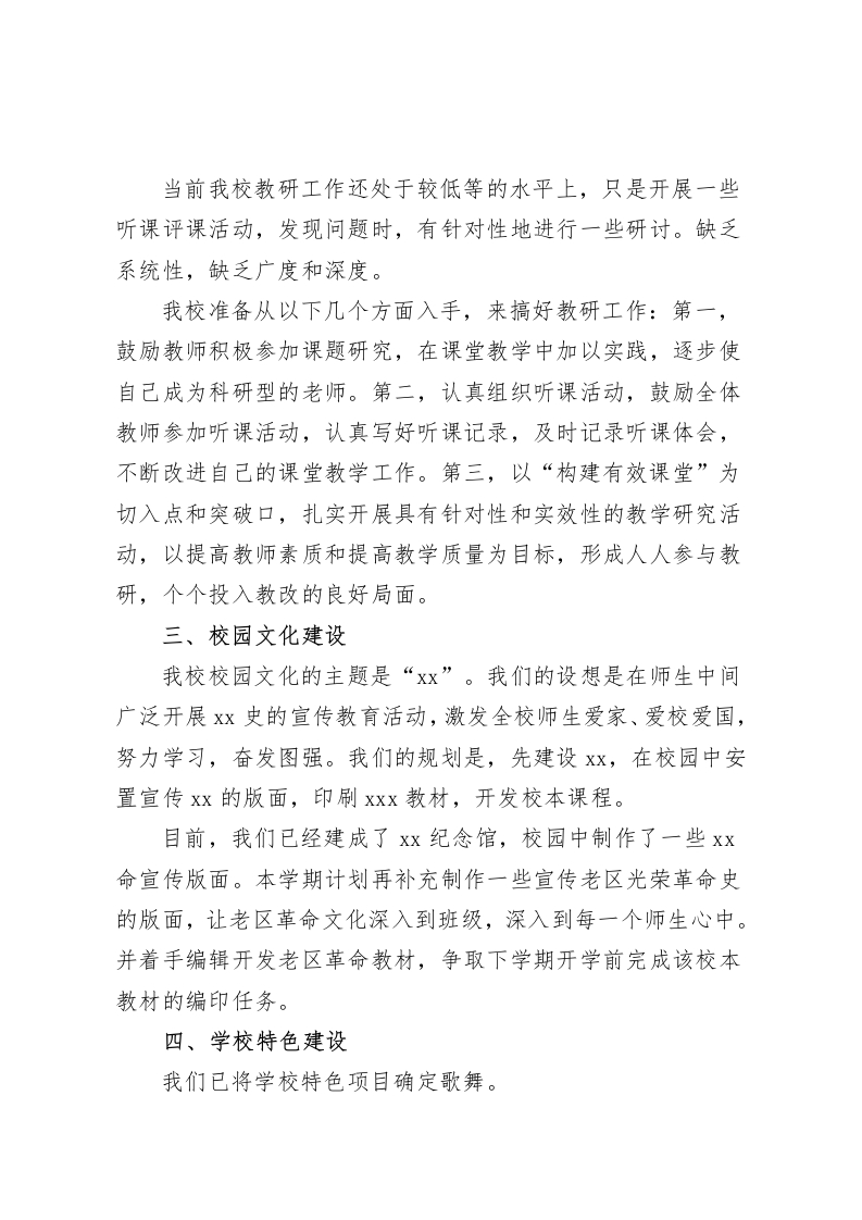 学校工作,校长汇报我们不会止步不前,我们万分珍惜今后的每一次机会,竭尽全力,倾心教育,用情管理尊敬的中心学校领导和各位同仁:大家上午好!近年来,在上级领导和各位同仁的关心支持下,我和全校师生一起,同心协力,奋勇拼搏,基本圆满地完成了上级下达的各项工作任务,取得了一定成绩。今天借助中心学校搭建的这个平台,我将自己的一些想法与各位分享,欢迎各位领导和同仁批评指正。一、我的办学理念我的办学理念是“以人为本,科学施教,促进师生共同发展”。“以人为本”有两个方面的内涵:即“以学生为本”和“以教师为本”。学生是学校的主体,以学生为本就是说学校的一切工作都是为了促进学生的发展。要求每一位教育工作者都要充分尊重学生,关爱学生,尊重的个体差异,把促进每一个学生的良好发展当作自己工作的目标。教师是学校教育的实施者,教师的素质高了,才会有学生的良好发展。以教师为本,就是要尊重教师的人格和劳动成果,关心教师的生活,创造条件促进教师的培训工作,不断提高教师教育教学管理水平。