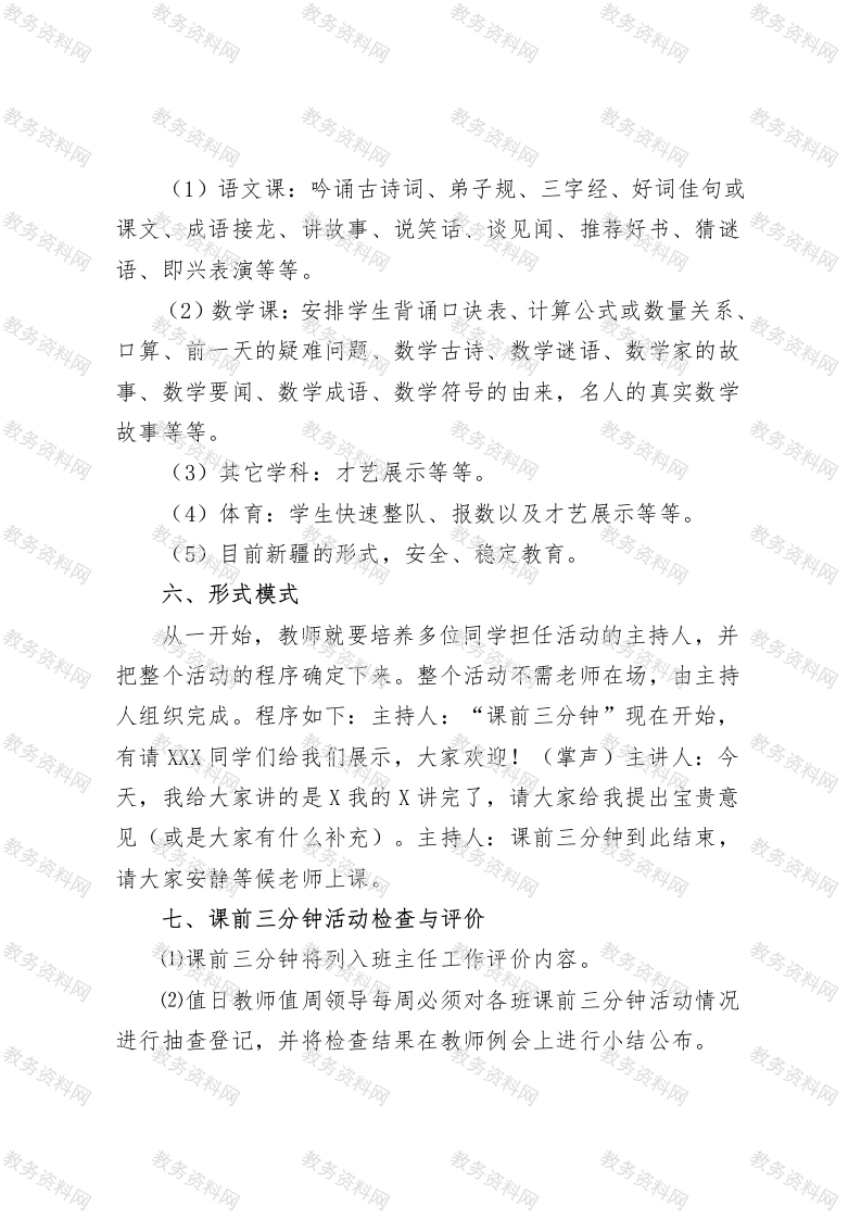 学校课前三分钟活动实施方案此内容为付费资源,请付费后查看