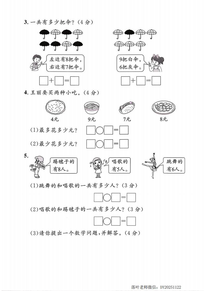 2025冀教版一年级数学上册第四单元测试卷(落叶老师)此内容为付费资源,请付费后查看