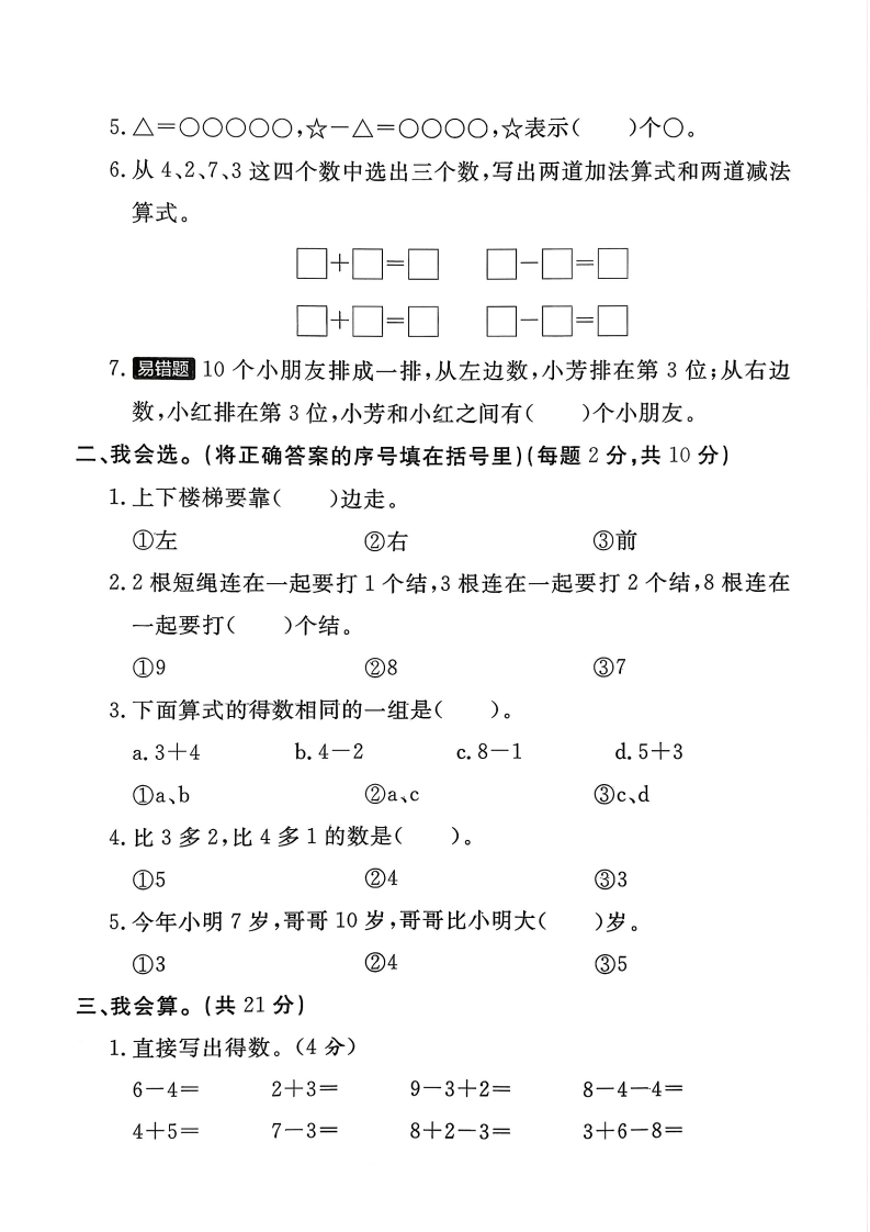 2025年人教版一年级数学上册期中测试卷(莎)此内容为付费资源,请付费后查看