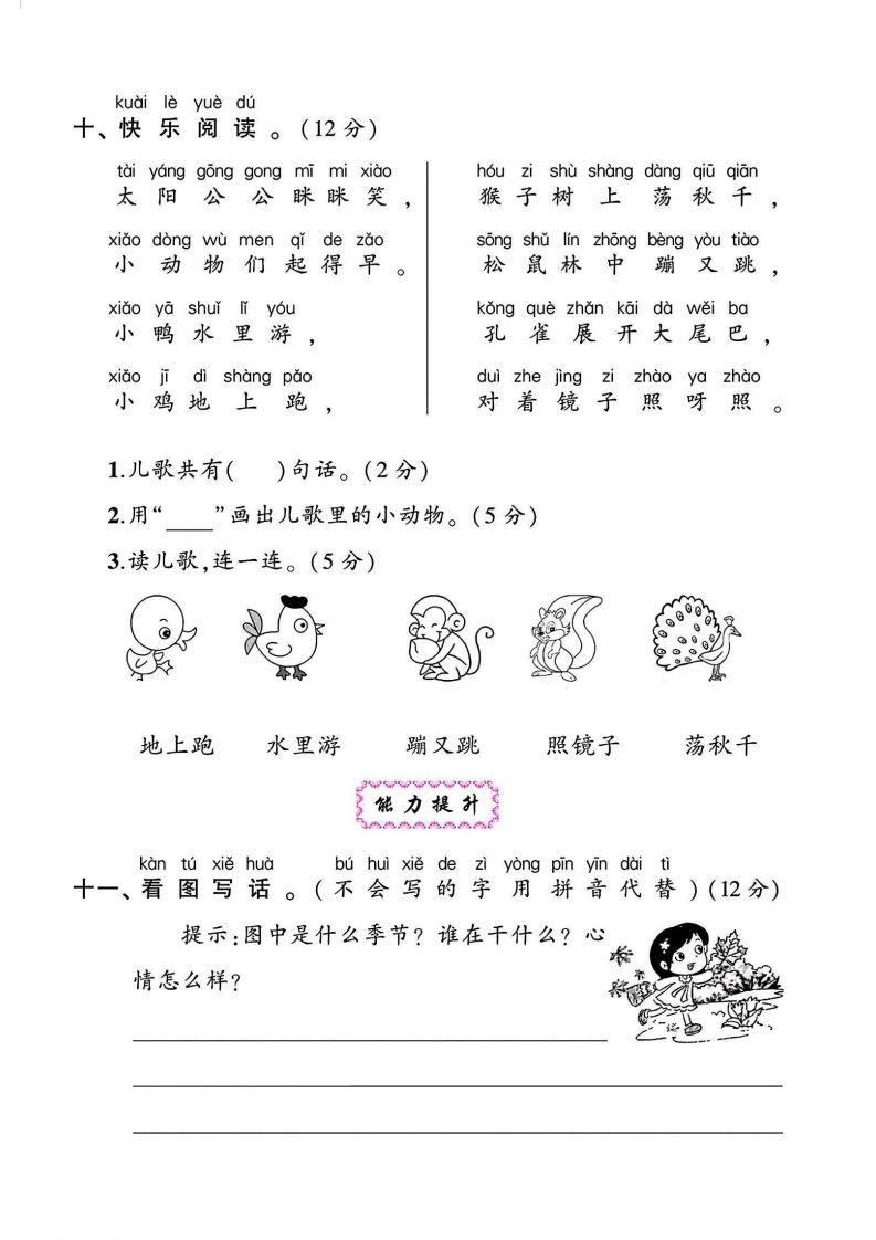 2025人教版一年级语文上册第五单元测试卷(小学教育)32此内容为付费资源,请付费后查看