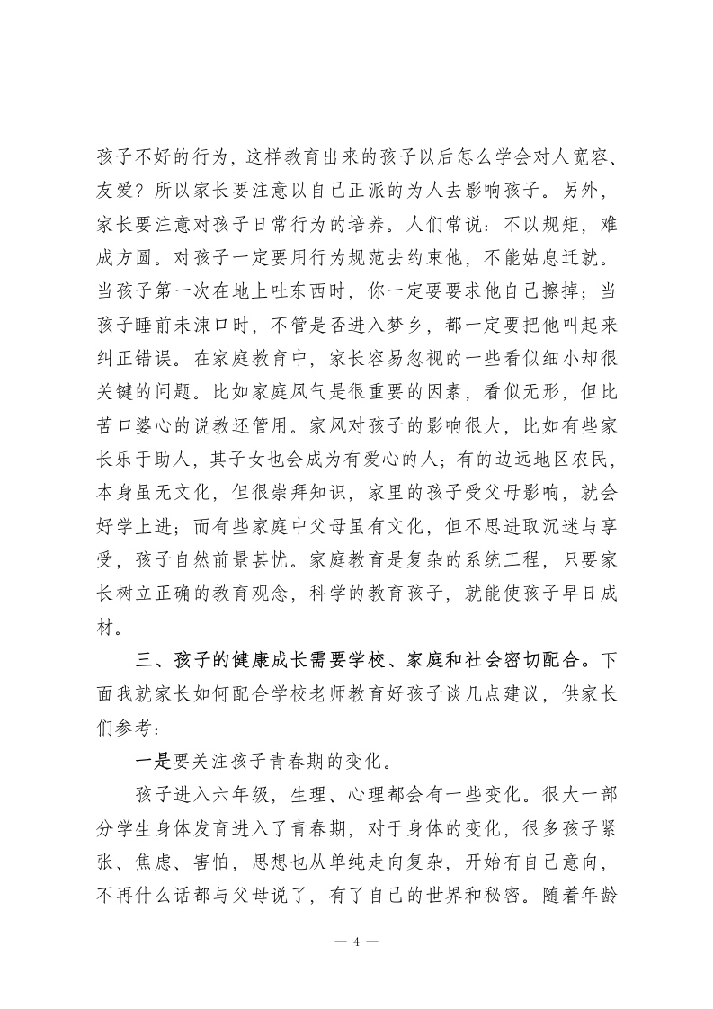 小学六年级毕业班家长会上,校长讲话,从4块内容进行阐述此内容为付费资源,请付费后查看