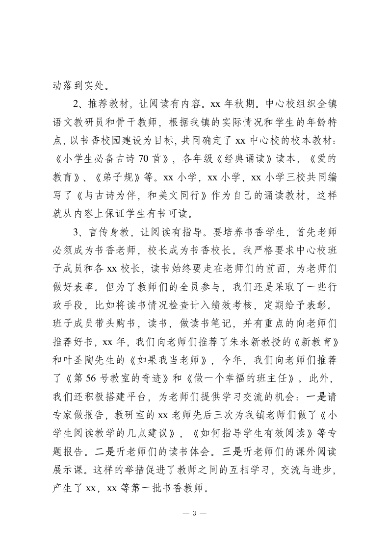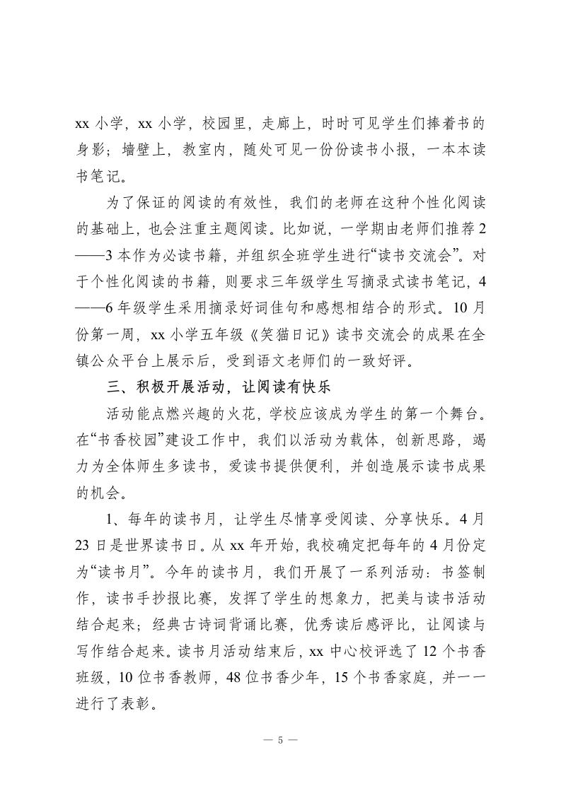 校长在校长论坛中讲话让书香浸润校园,让经典陪伴童年尊敬的各位领导、各位同仁,大家好:宋代教育家朱熹说过,“问渠哪得清如许,为有源头活水来。”而教体局组织的校长论坛正是我们互相学习的源头活水,感谢教体局搭建这样一个平台,让我们有了一个探讨展示的机会。今天,我怀着学习、交流的心愿,带着真诚的态度,和大家一起谈谈Xx中心校“书香校园”建设方面的点点滴滴,我发言的题目是《让书香浸润校园,让经典陪伴童年》。书籍是人类宝贵的精神财富,是一座掘不尽的矿,是走向未来的基石。读书是人类重要的学习方式,是人生奋斗的航灯,是人类进步的阶梯。回望中华上下五千年,多少文人墨客对读书情有独钟:从西汉刘向的“书犹药也,善读之可以医愚”到杜甫的“读书破万卷,下笔如有神”,再到苏轼的“腹有诗书气自华,无不让人精神振奋。而那一声“为中华崛起而读书”又让多少国人为之震撼,因此,开展“书香校园”建设活动十分有必要。近年来,Xx中心校校认真贯彻教体局“开展经典诵读,营造书香校园”的工作思路,将“书香校园”作为新课程改革的重要手段,全力打造“书香校园”特色学校。丰富多彩的读书活动一经开展,立刻受到全镇师生的热烈欢迎。广大师生读书的热情空前高涨,校园内充满了朗朗书声。一、营造氛围,让校园有书香1