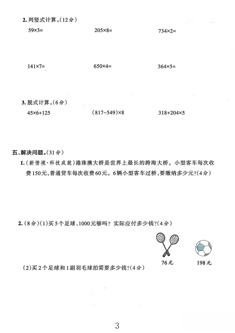 三年级数学上册人教版第六单元测试卷此内容为付费资源,请付费后查看