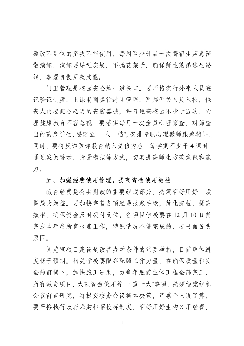 XX县教育局在近期重点工作部署会议上的讲话同志们今天,我们召开全县教育系统近期重点工作部署会议,主要任务是深入学习贯彻党的二十大精神,全面梳理当前教育工作进展,精准部署下一阶段重点任务。刚才,各位分管领导就学生餐管理、校园安全、财务管理、就读保障等工作作了具体安排,讲得都很实在,措施也很有针对性。下面,我代表局党组,就当前及下一阶段教育工作,再强调七点意见。一、强化党建引领作用,筑牢教育发展根基教育系统是党领导下的重要阵地,加强党的建设是根本保证。当前,我们要把党建工作作为首要政治任务,切实抓紧抓实抓出成效。要持续完善党组织学习机制,每月初制定下发专题学习任务清单,明确学习内容、时间节点和责任人。各基层党组织要结合实际,创新学习方式,采取集中学习、个人自学、专题研讨等多种形式,确保学习全覆盖、无死角。党员领导干部和党组织书记要发挥示范带头作用,围绕党的二十届三中全会精神,深入基层学校开展宣讲活动,每季度至少讲一次专题党课。党课内容要紧密结合教育实际,既要讲清理论内涵,又要回应师生关切,防止空对空、走过场。党员干部要在教育教学改革、师德师风建设、服务师生群1