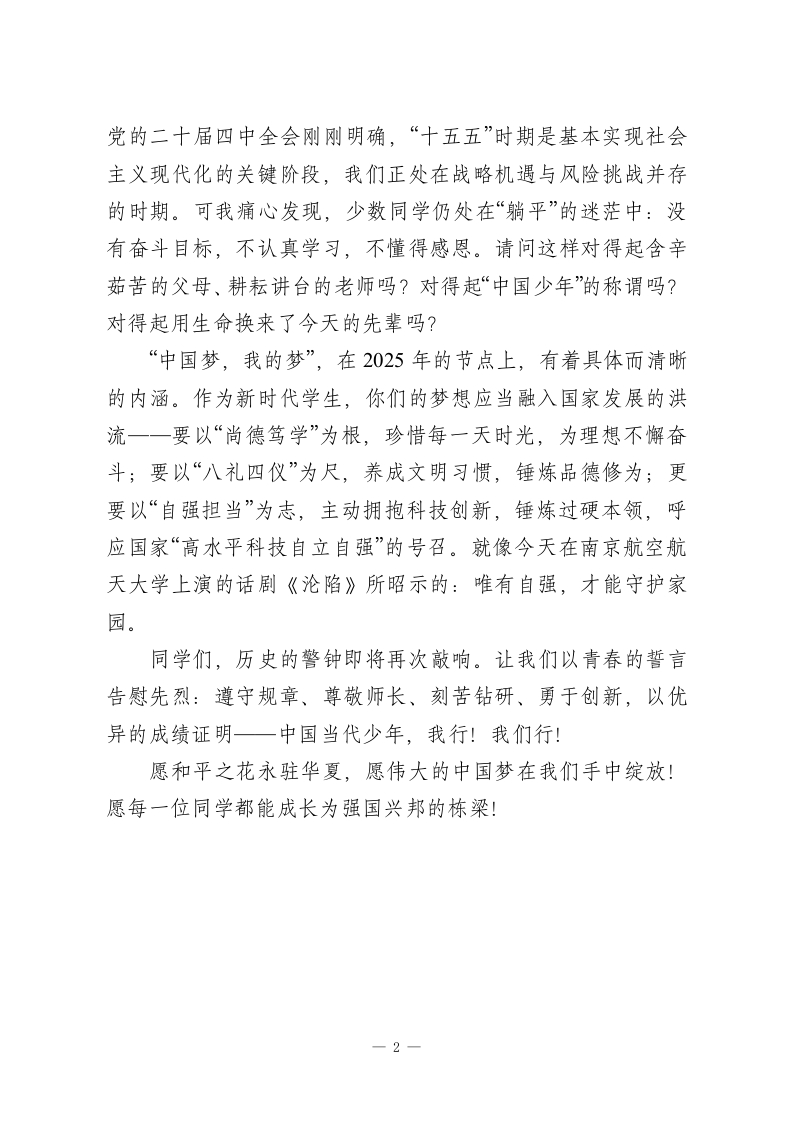 2025国家公祭日,校长在国旗下讲话:勿忘国殇,吾辈担当此内容为付费资源,请付费后查看