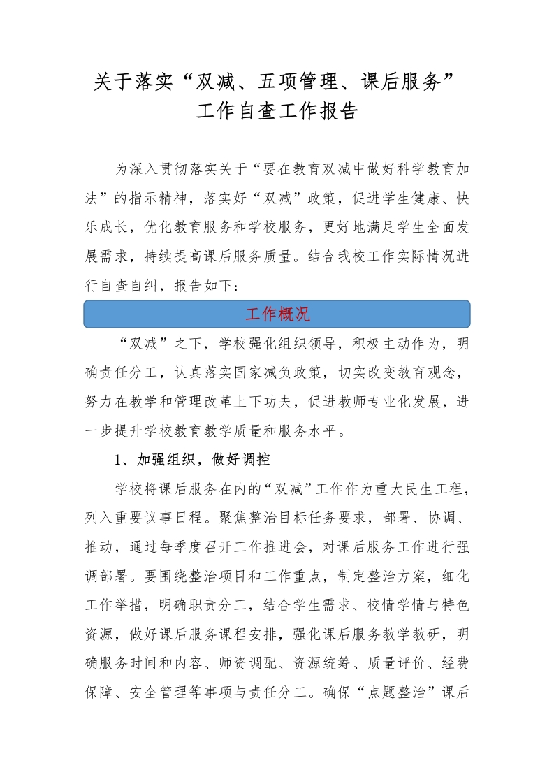 关于落实“双减、五项管理、课后服务”工作自查工作报告此内容为免费资源,请登录后查看