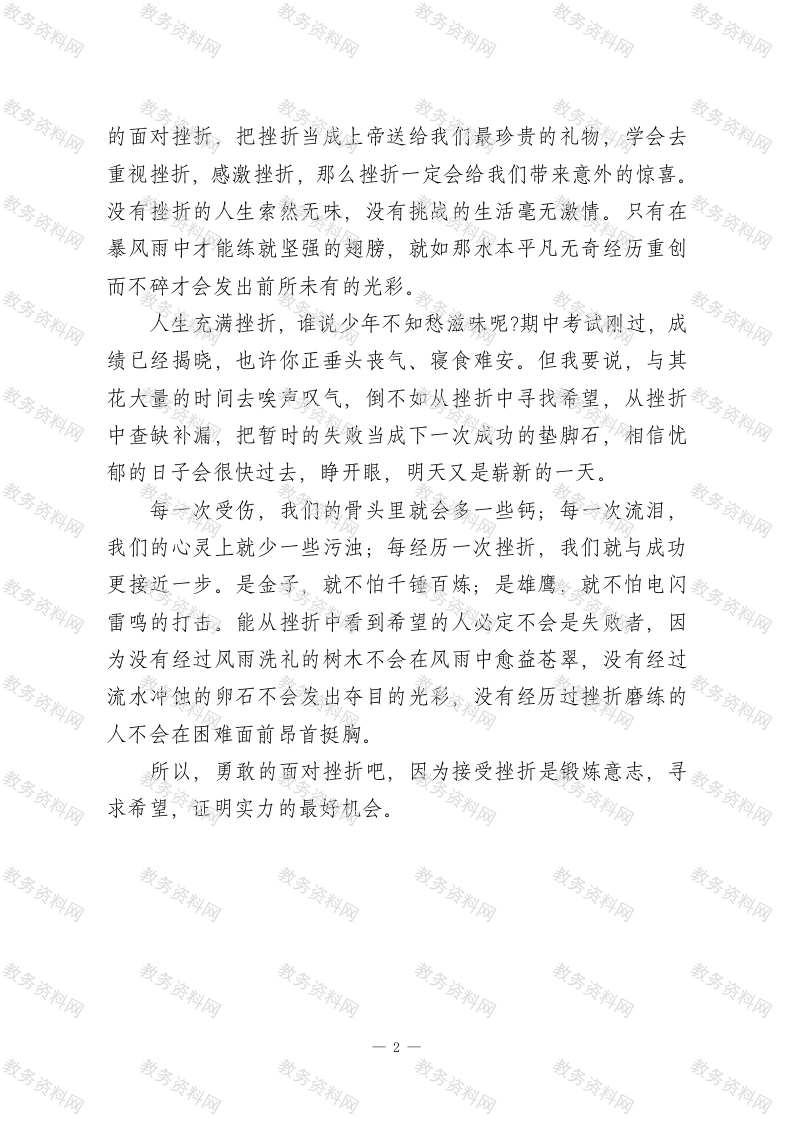 校长在国旗下演讲在挫折中寻求希望此内容为付费资源,请付费后查看