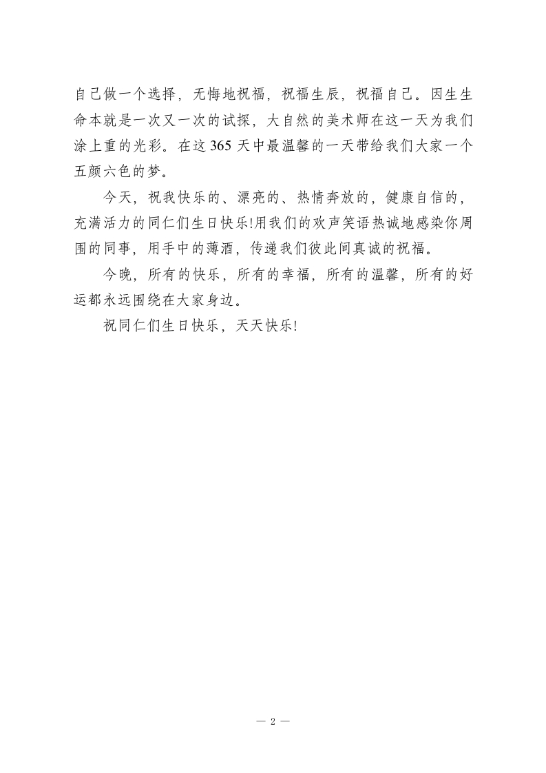 校长在教师集体生日会上讲话用我们的欢声笑语热诚地感染你周围的同事,用手中的薄酒,传递我们彼此间真诚的祝福此内容为付费资源,请付费后查看