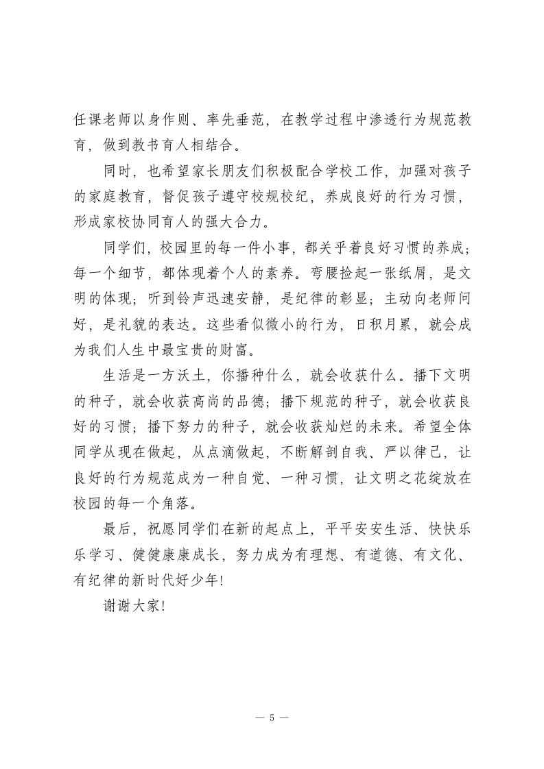 校长在秋季学期学生行为规范教育大会讲话此内容为付费资源,请付费后查看