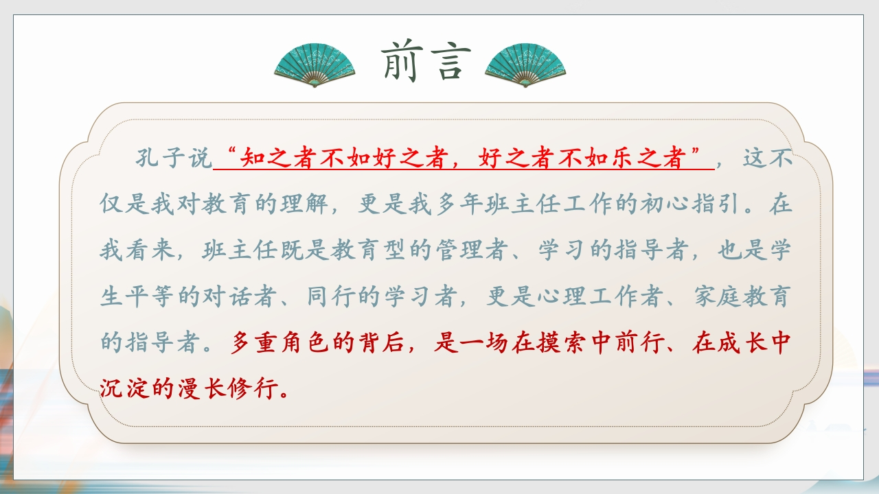 【育人方略】班主任工作经验分享:在摸索中成长,在成长中摸索tangqi885小时前发布关注私信55.17MB24页0359 第1页 / 共24页 第2页 / 共24页 第3页 / 共24页 第4页 / 共24页 第5页 / 共24页 试读已结束,还剩19页,您可下载完整版后进行离线阅读 【育人方略】班主任工作经验分享:在摸索中成长,在成长中摸索此内容为付费资源,请付费后查看¥9.9¥19.9VIP会员免费立即购买您当前未登录!建议登陆后购买,可保存购买订单付费资源© 版权声明本站是一个信息分享及获取的平台,不确保部分用户上传资料的来源及知识产权归属,资料由老师投稿,公开渠道整理,网友上传,如果侵犯到您的权益,请联系客服删除THE ENDPPT课件 文本预览 2025-2026年第一学期班主任工作经验分享在摸索中成长在成长中摸索班主任:X老师时间:2025.12 查看更多 收起部分 喜欢就支持一下吧点赞9 分享QQ空间微博QQ好友海报分享复制链接收藏