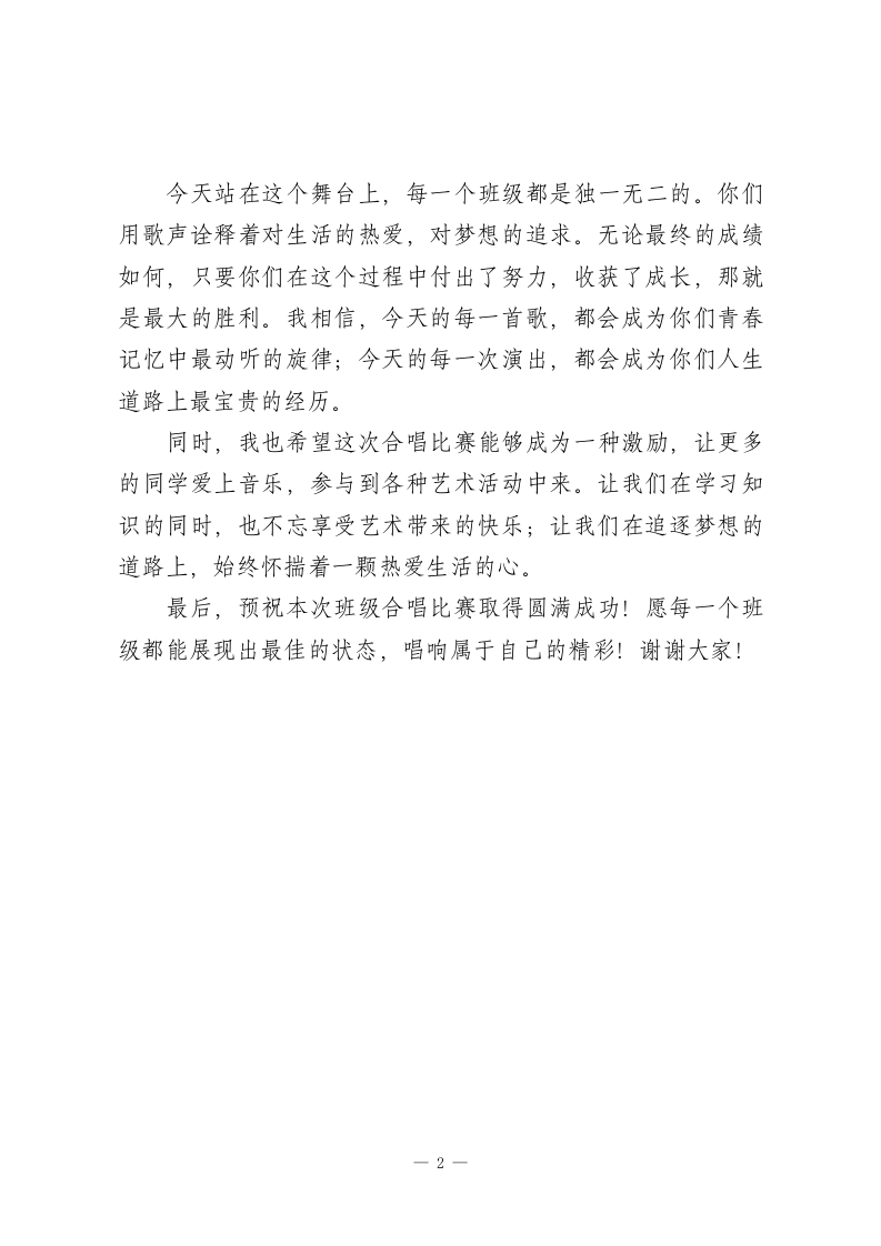 班级合唱比赛,校长发言:唱响属于自己的精彩此内容为付费资源,请付费后查看