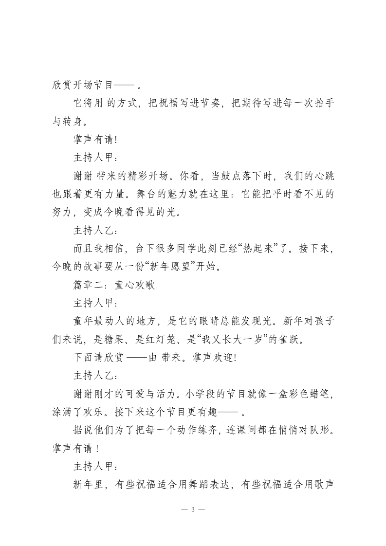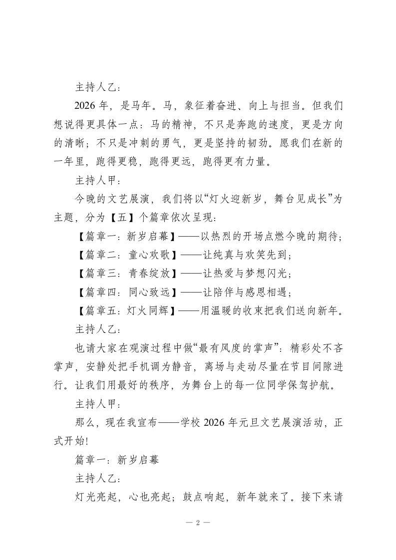 灯火迎新岁,舞台见成长——2026元旦文艺展演主持词此内容为付费资源,请付费后查看