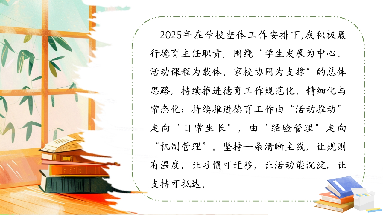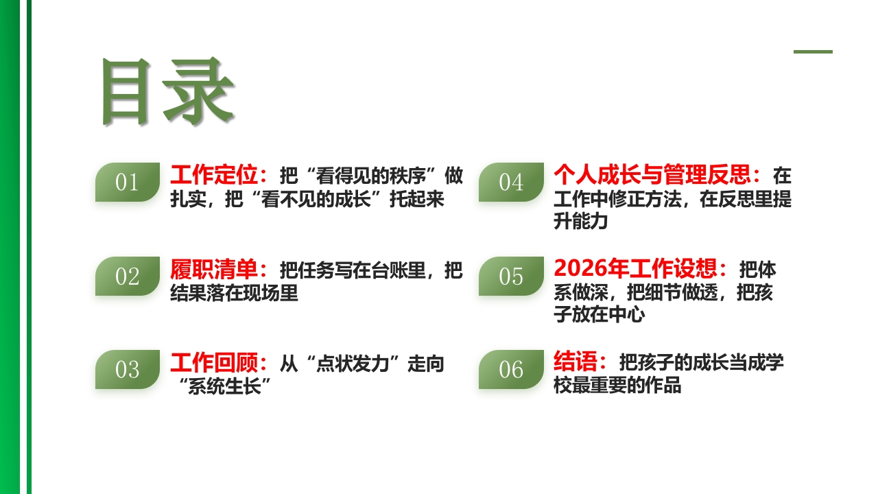 小学德育副校长2025年度述职报告:把德育写进心里,把成长落在日常tangqi889小时前发布关注私信4.76MB32页05015 第1页 / 共32页 第2页 / 共32页 第3页 / 共32页 第4页 / 共32页 第5页 / 共32页 试读已结束,还剩27页,您可下载完整版后进行离线阅读 小学德育副校长2025年度述职报告:把德育写进心里,把成长落在日常此内容为付费资源,请付费后查看¥9.9¥19.9VIP会员免费立即购买您当前未登录!建议登陆后购买,可保存购买订单付费资源© 版权声明本站是一个信息分享及获取的平台,不确保部分用户上传资料的来源及知识产权归属,资料由老师投稿,公开渠道整理,网友上传,如果侵犯到您的权益,请联系客服删除THE END德育资料教研资料 文本预览 向上生长明把德育写进心里,把成长落在日常2025年德育工作述职装的千,传不文明吧家教其庆端许活动。汇报:XXX日期:2025.12 查看更多 收起部分 喜欢就支持一下吧点赞15 分享QQ空间微博QQ好友海报分享复制链接收藏
