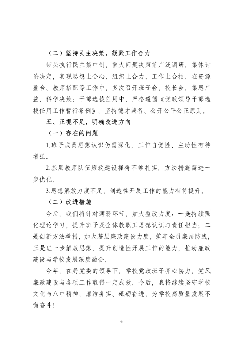 校长2025述职述廉报告:坚守文化铸根基,廉洁务实促发展尊敬的各位领导:大家好!自任职以来,我深切体会到校长岗位的责任与使命,而廉洁从政是推动学校发展的根本保障。今年,我始终扎根Xx中学,触摸学校文化、感悟八中精神,与全体师生并肩奋斗。现将全年履职情况及廉洁自律表现报告如下,请予评议。我始终坚信,“吃苦耐劳、无私奉献的敬业精神;自强不息、创新务实的开拓精神;同心同德、团结奋进的协作精神;孜孜不倦、斗志昂扬的拼搏精神”这一八中精神,是学校发展的精神支柱与动力源泉。无论是学生进步、教师成长还是学校发展,只要坚守这份文化底色、奋斗不息,便没有我们不能达到的境界和高度。今年,我深入贯彻党的教育方针,以高质量发展为导向,坚持依法治校、公平教育,深化素质教育与课堂教学改革,着力营造优良校风、教风、学风,为提升学校办学水平、教育质量及社会声誉,扎实推进各项工作。一、勤学笃行,筑牢廉洁自律思想防线(一)强化理论学习,提升政治素养全年坚持系统学习党的二十大精神、《中国共产党党员领导干部廉洁从政若干准则》等重要内容,以身作则、率先垂范,1