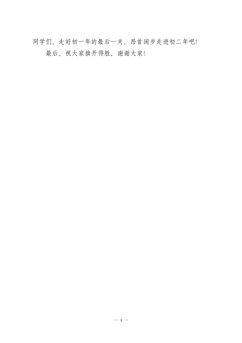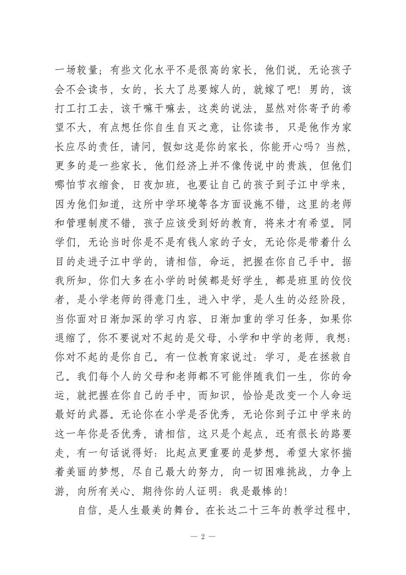 在期末考试动员大会上,校长请家长讲话:期望自己的孩子更加出色时间:2021-11-1021:58:03老师、同学们:大家好!今天,本来是轮不到我上场的。因为家委会会长临时有事,就赶鸭子上架,由我来参加你们的“期未考试动员大会”。昨天晚上八点多钟,当我接到这个任务的时候,我本想拒绝,但想到在你们中间,有我的学生,有我邻居的孩子,有我最疼爱的女儿,想到一千两百多张充满活力的脸庞,一千两百多个前途不可限量的新一代,于是,我深感荣幸,然后就大胆地说:我来!尽管昨天晚上我女儿在与我通电话的时候,开玩笑着交代我:爸,明天你可要慎重点,同学们可都厉害着呢,至少,你着装得漂亮点。但由于今天上了一整天的课,没时间对长得本不太帅的自己作一番妆扮,汗流浃背的,在此,向同学们和我的女儿说声:对不起!我来了,可我却无法代表所有的家长。因为长期以来,我了解到:不同的家长把孩子送到子江中学,有着不同的目的一一有做生意的家长,他们笑称Xx中学是贵族学校,孩子成绩好坏不重要,让孩子与一些有钱人的孩子作同学,以后有靠山,这也许是要你来这里学会点头哈腰、长大了当有钱人的跑腿的,所以,当我们发现身边有比吃穿的,比老爸开的是什么牌子的车的,我们大可不要理他、甚至于鄙视他,而与他在学习上来1