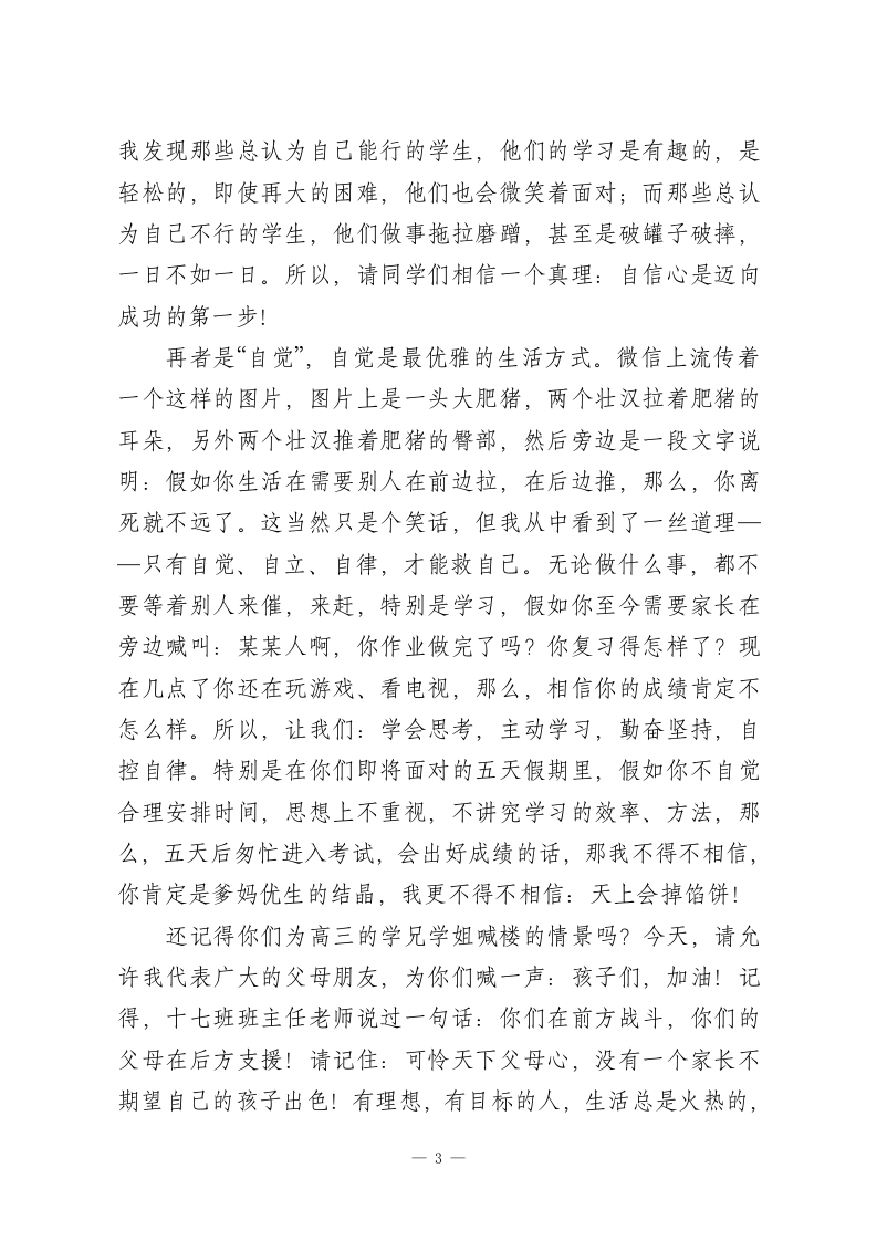 在期末考试动员大会上,校长请家长讲话:期望自己的孩子更加出色此内容为付费资源,请付费后查看