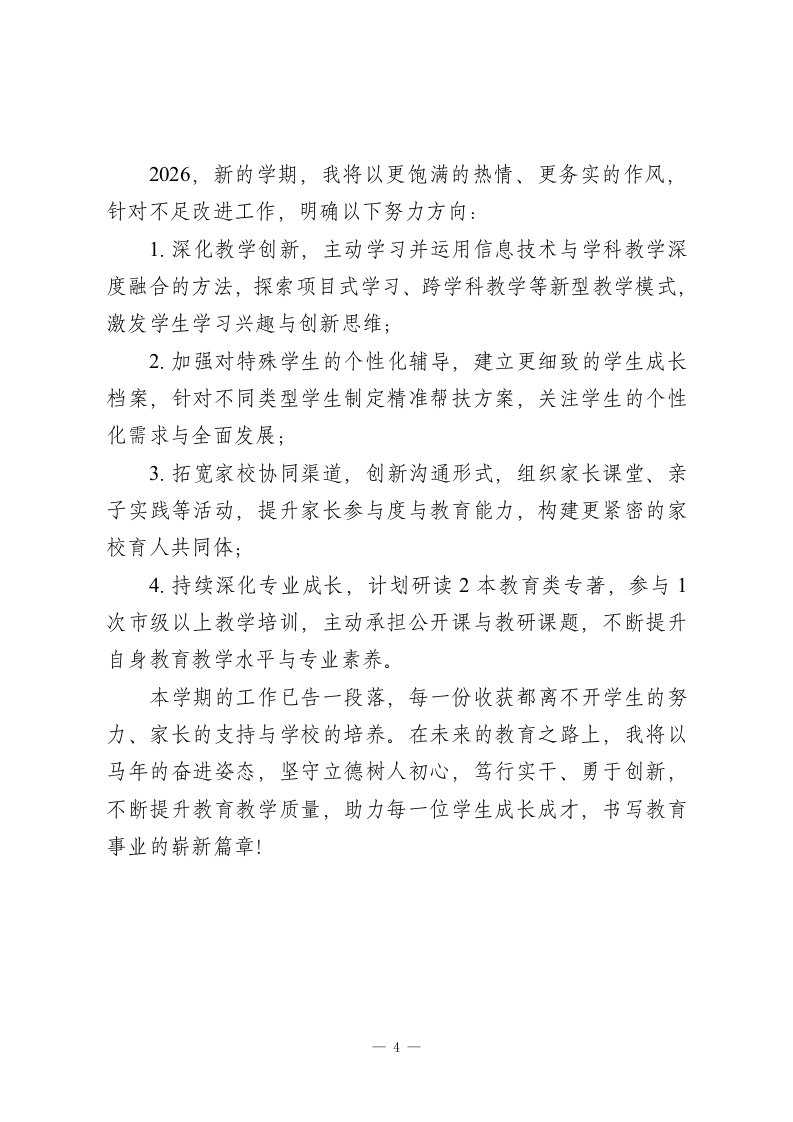 2025-2026学年秋季学期教师期末工作总结:以马年奋进之姿,践立德树人初心此内容为付费资源,请付费后查看