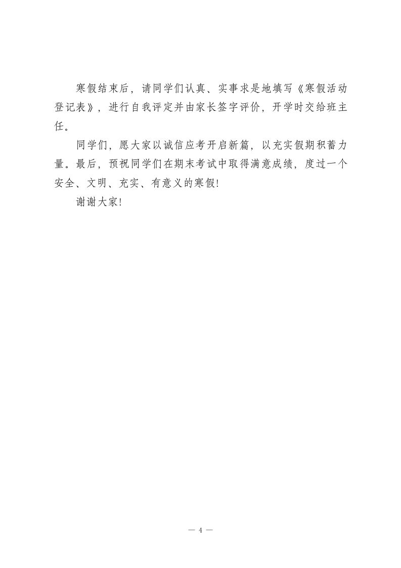秋季学期德育副校长期末考试励志讲话:诚信应考显真章,笃行逐梦启新程此内容为付费资源,请付费后查看