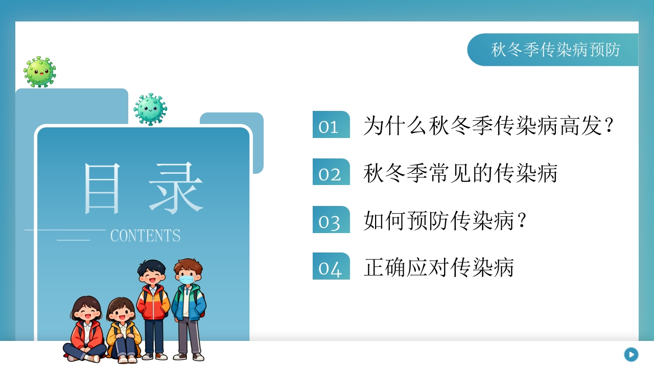 校园【秋冬】传染病预防主题班会tangqi882小时前发布关注私信27.10MB30页0228 第1页 / 共30页 第2页 / 共30页 第3页 / 共30页 第4页 / 共30页 第5页 / 共30页 试读已结束,还剩25页,您可下载完整版后进行离线阅读 校园【秋冬】传染病预防主题班会此内容为付费资源,请付费后查看¥9.9¥19.9VIP会员免费立即购买您当前未登录!建议登陆后购买,可保存购买订单付费资源© 版权声明本站是一个信息分享及获取的平台,不确保部分用户上传资料的来源及知识产权归属,资料由老师投稿,公开渠道整理,网友上传,如果侵犯到您的权益,请联系客服删除THE ENDPPT课件 文本预览 XXX学校或L0G0+++秋冬季传染病预防主讲人:XXX时间:20XX.XX1010 查看更多 收起部分 喜欢就支持一下吧点赞8 分享QQ空间微博QQ好友海报分享复制链接收藏