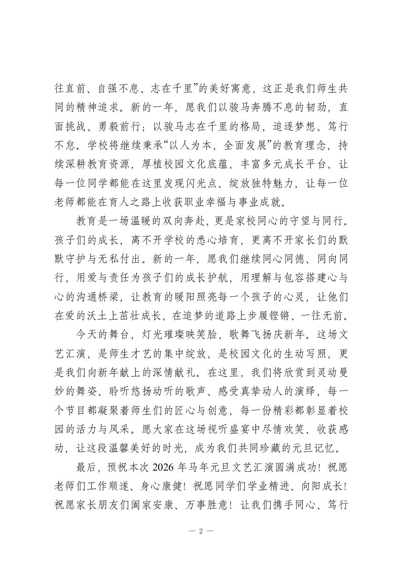 2026年马年元旦文艺汇演,校长开场致辞:骏马驰春开胜景,家校同心筑未来此内容为付费资源,请付费后查看