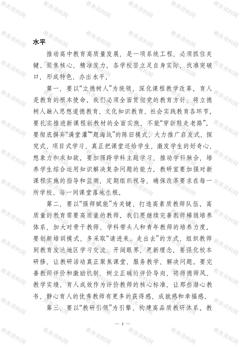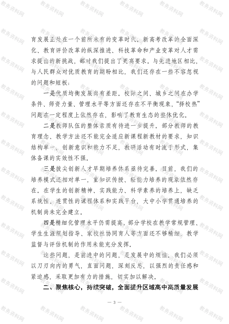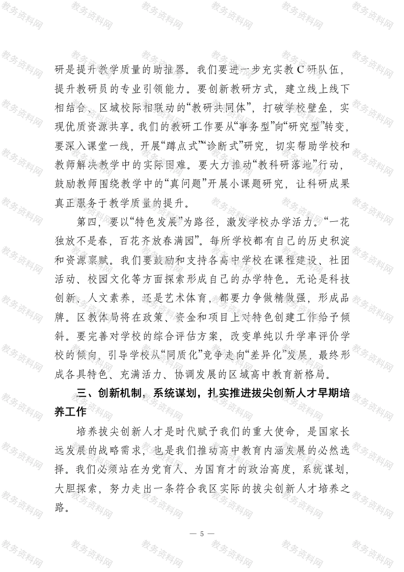 在XX区高中教学高质量发展暨拔尖创新人才培养推进会上的讲话此内容为付费资源,请付费后查看