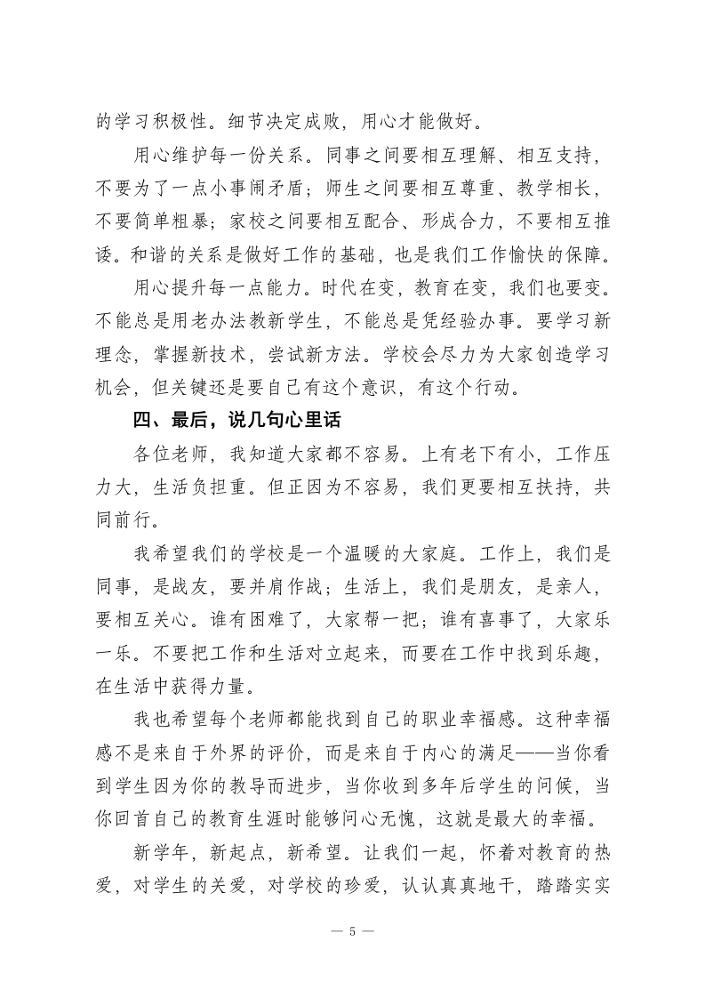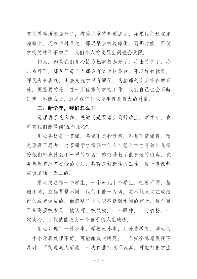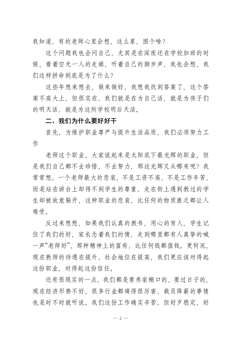 全校教职工工作会议,校长讲话:大快人心,让200名教师起立鼓掌,为自己干,为学生干,为学校干!各位老师,大家上午好!时间过得飞快,感觉昨天刚送走了最后一拨毕业生,今天就要迎接新的学年了,看着大家精神抖擞地坐在这里,我心里特别踏实,暑假肯定大家都过得蛮充实的,该休息的休息了,该充电的充电了,该团聚的也团聚了,今天又回到这个地方,准备开始新的征程。站在这里,看着你们每一个人,我想要说的第一句话就是,谢谢你们回来,谢谢你们不走!这可不是客气话,这可是真话!外面的世界多精彩,外面的世界多诱惑,外面的机会多多少少,但是你们依然留在了这个三尺讲台之上,这就是一种坚守!今天这个会啊,我不想念稿子,也不讲大道理,大家都是老熟人了,有的一起共事十几年,有的才来几年,但都是并肩作战的战友,我想跟大家聊聊心里话,聊聊我们这工作是啥,聊聊新学年咱们怎么走。一、先说说我们面临的现实实话实说,现在搞教育不容易,社会对教育的期望值越来越高,家长对孩子的要求越来越多,学生也越来越有个性,我们呢,压力越来越大。有时候我也会感觉到大家的累,备不完的课,改不完的作业,开不完的会,各种各样的检查评比考核,