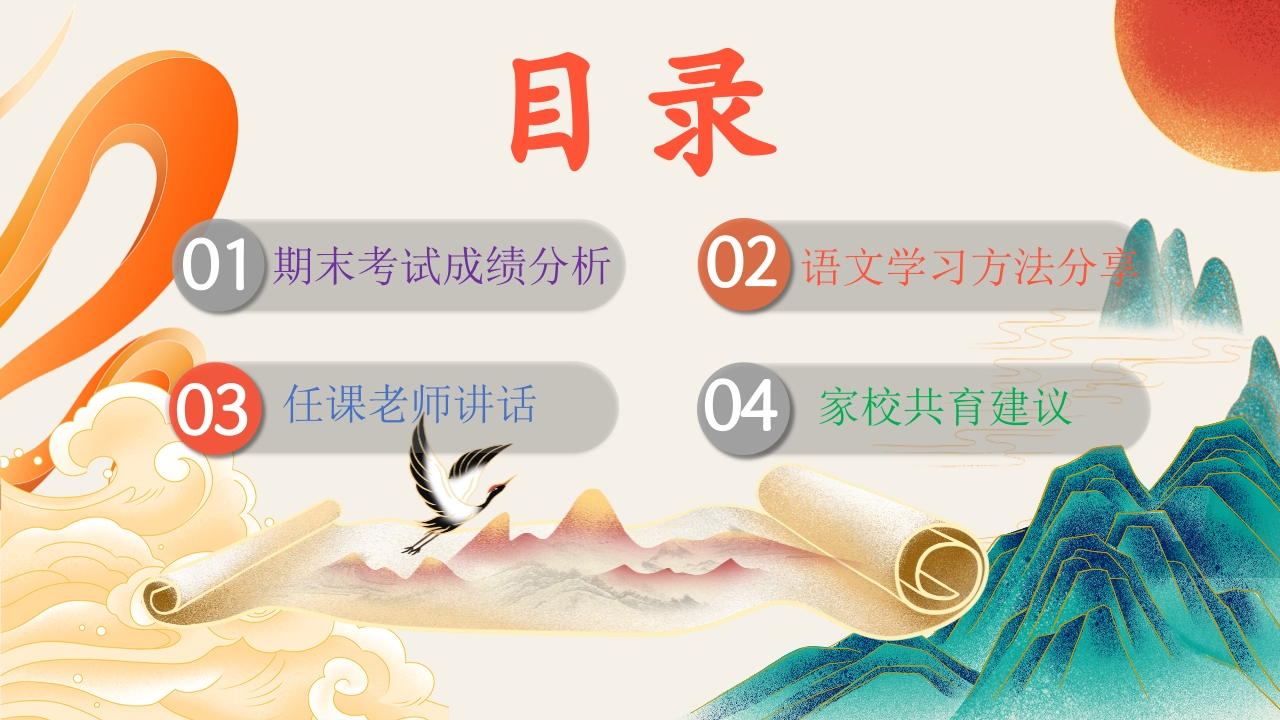 【六年级】【语文】秋季期末家长会:熹微灯火,点亮山河tangqi88前天发布关注私信96.25MB57页04714 第1页 / 共57页 第2页 / 共57页 第3页 / 共57页 第4页 / 共57页 第5页 / 共57页 试读已结束,还剩52页,您可下载完整版后进行离线阅读 【六年级】【语文】秋季期末家长会:熹微灯火,点亮山河此内容为付费资源,请付费后查看¥9.9¥19.9VIP会员免费立即购买您当前未登录!建议登陆后购买,可保存购买订单付费资源© 版权声明本站是一个信息分享及获取的平台,不确保部分用户上传资料的来源及知识产权归属,资料由老师投稿,公开渠道整理,网友上传,如果侵犯到您的权益,请联系客服删除THE ENDPPT课件 文本预览 X学校X班期末家长会以熹微灯火,点亮滚烫星河时间:2026.1.XX● 查看更多 收起部分 喜欢就支持一下吧点赞14 分享QQ空间微博QQ好友海报分享复制链接收藏