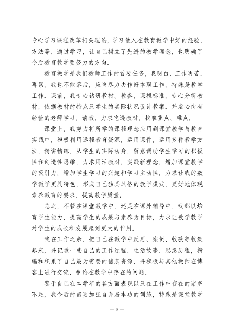 小学数学教师秋季年度教学工作总结在这一年里,我对自己要求严格,力争在思想上、工作上在同事、学生的心目中树立起榜样的作用。我还积极参与各类政治业务学习,努力提高自己的政治水平和业务水平。听从学校的工作支配,协作领导和老师们做好校内外的各项工作。以下是我这一年的个人工作总结。这一学年,小学数学教学工作中,我始终坚持党的教育方针,面向全体学生,教书育人,为人师表,确立“以学生为主体”“以培育学生主动发展”为中心的教学思想,重视学生的个性发展,重视激发学生的创造能力,培育学生德、智、体、美、劳全面发展。我在思想上严于律己,热爱教育事业。时时以一个好教师的身份来约束自己,鞭策自己,力争在思想上、工作上取得进步,得到提高,使自己能顺应社会发展的需要,适应岗位竞聘的需要。一学年来,我还积极参与各类学习,深刻剖析自己工作中的不足,找出自己与其他教师间的差距,写出心得体会,努力提高自己的政治水平和理论修养。同时,听从学校的工作支配,协作领导和老师们做好校内外的各项工作。“学海无涯,教无止境”,作为一名教师,只有不断充电,才能维持教学的青春和活力。随着社会的发展,学问的更新,也督促着我不断学习。所以,本学年,除了积极参与政治理论学习外,我还积极进行业务学习,提高自己的工作能力和业务素养,使自己能够更好的胜任自己的教师工作。结合课程改革利用书籍、网络,1