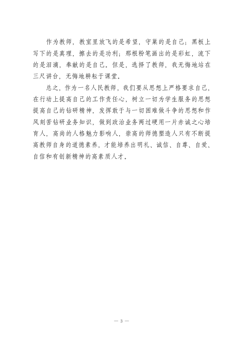 2025年度教师师德师风考核工作总结通过师德师风文件和宣传资料的培训学习,自己进一步深深体会到作为一个教育工作者必须要做到以下几点:一、爱党爱国。关心时事政治,拥护党的基本路线,坚持四项基本原则。二、热爱教育事业。要把教育与国家的兴亡、民族的振兴,现代化建设的成败联系起来,才能对教育事业有深刻的认识,并将这认识落实到日常的行动中,才能产生对教育事业的真爱,树立“服务学生奉献社会”的精神。三、热爱学生。学生是祖国的未来,只有把学生教育培养好,振兴中华才有希望。关心爱护学生,尊重学生人格,平等、公正地对待学生,不侮辱、谩骂、歧视学生,不体罚和变相体罚学生。热爱学生,可激发学生的学习热情,使学生树立远大目标,成为德、智、体、美、劳全面发展的社会社会主义新人。四、勇于同一切危害教育事业的行为进行坚决的斗争。一个教育工作者要对一切危害教师、危害学校、有损师德师风的行为,必须予以坚决斗争,才能为教育事业的顺利发展创造和谐的外部环境。五、不断提高自身素质和教育教学科研水平。要成为一名优秀教师,关键要有较高的素质。必须具备扎实的思想素质、业务素质、品德素质、心理素质、创新精神和-1