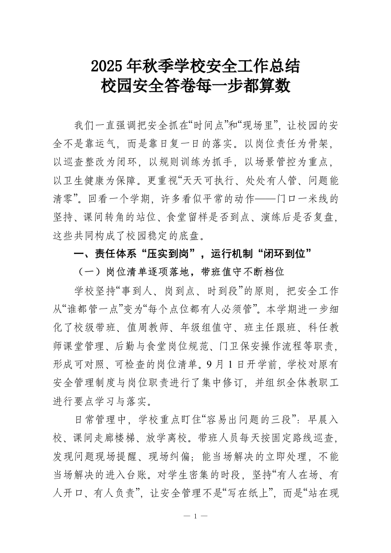 2025年秋季学校安全工作总结-校园安全答卷每一步都算数此内容为付费资源,请付费后查看