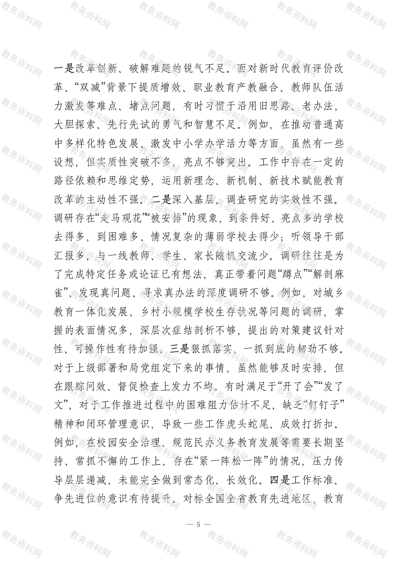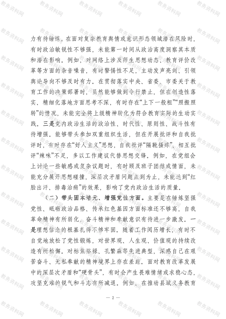 市教育局党组书记2025年度专题民主生活会对照检查材料此内容为付费资源,请付费后查看