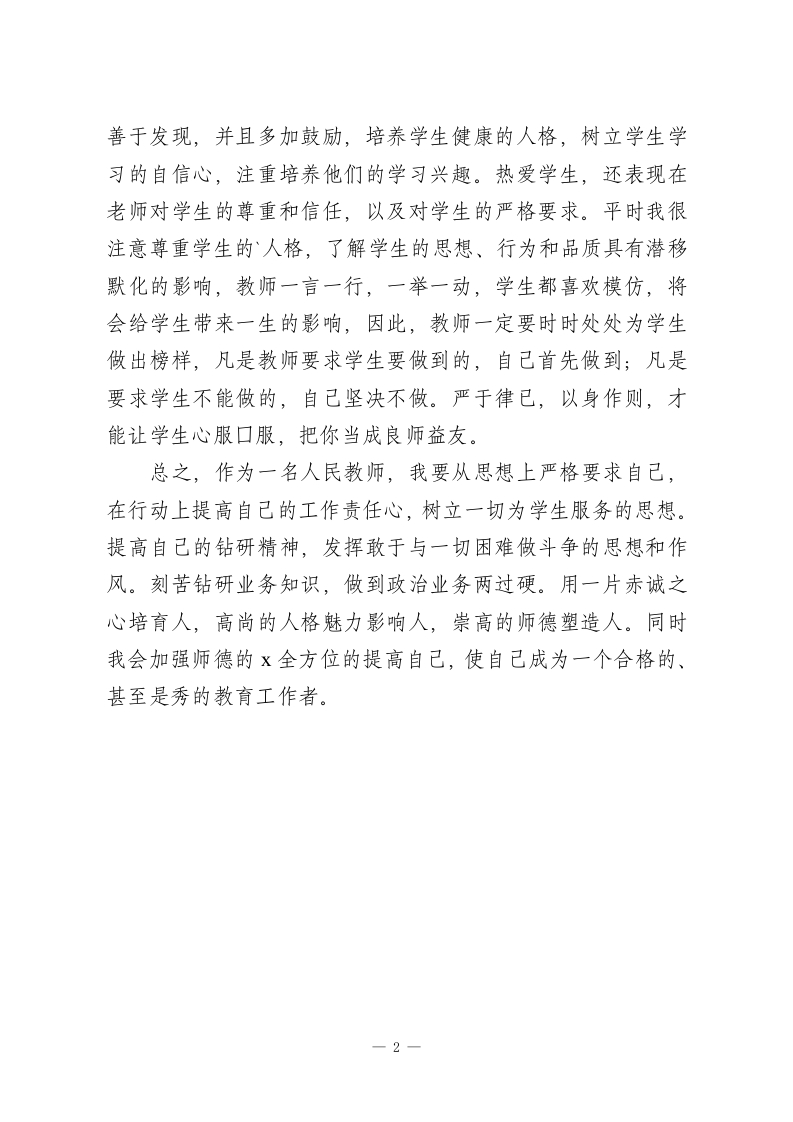 中小学教师师德师风2025年考核工作总结时间就像流水一般转瞬即逝,转眼间,一个学年的教育教学工作已经即将结束了,在这一学年中,我时时处处以一名人民教师的标准严格要求自己,以创新教育方针为指导,以教好学生,让学生全面发展为己任,踏踏实实,任劳任怨。为使今后更好地开展工作,总结经验,吸取教训,先将本人在这一学年来的工作表现总结如下。一、敬岗爱业,要热爱教育事业,要对教学工作有“鞠躬尽瘁”的决心既然我们选择了教育事业,就要对自己的选择无怨无悔,不计名利,积极进取,开拓创新,无私奉献,力求干好自己的本职工作,尽职尽责地完成每一项教学工作,不求,但求更好,不断的挑战自己,超越自已。二、加强政治学习,不断提高政治素养自己应该系统地学习《义务教育法》、《教师资格条例》等法律法规文件,按照《中小学教师职业道德规范》严格要求自己,奉公守法,恪尽职守,遵守社会公德,忠诚人民的教育事业,为人师表。三、爱心是师德素养的重要表现无论在生活上还是学习上,时时刻刻关爱学生,特别对那些学习特困生,更是要“特别的爱给特别的你,”切忌易怒易暴,言行过激,对学生要有耐心,对学生细微之处的好的改变也要-1-