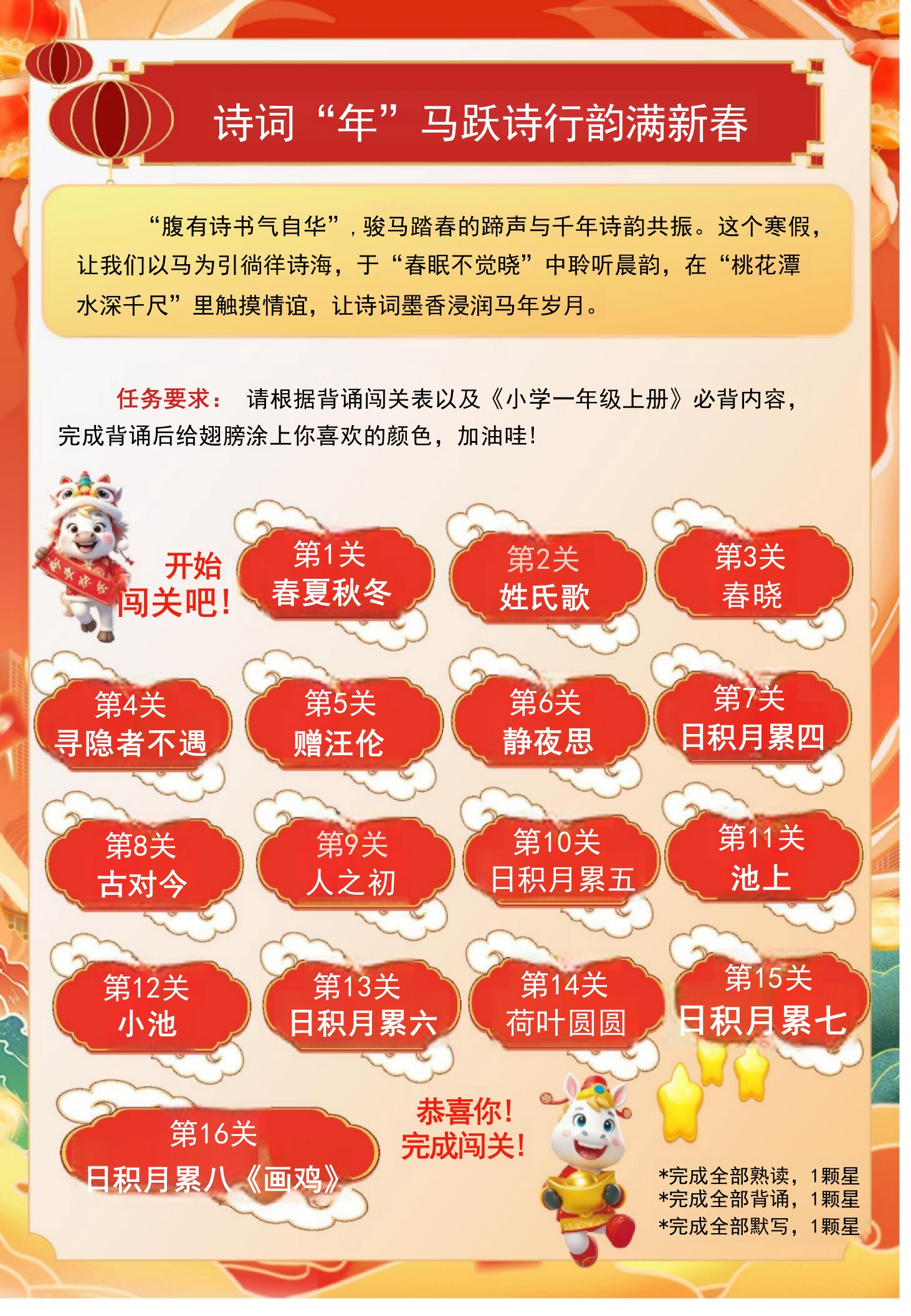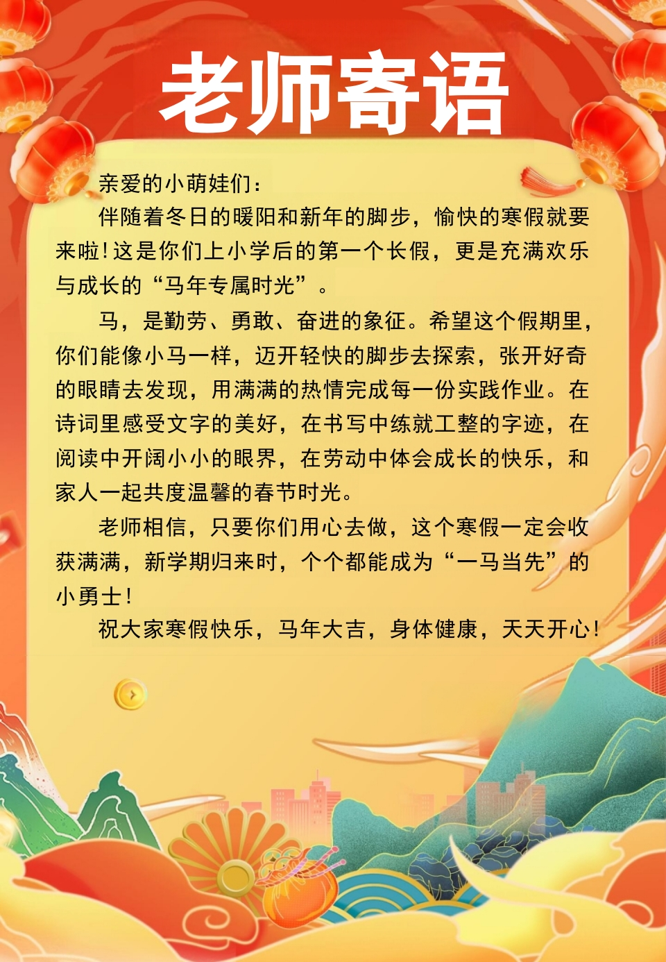 【最新】2026一年级寒假特色作业高清版tangqi882天前发布关注私信29.40MB18页05112 第1页 / 共18页 第2页 / 共18页 第3页 / 共18页 第4页 / 共18页 第5页 / 共18页 试读已结束,还剩13页,您可下载完整版后进行离线阅读 【最新】2026一年级寒假特色作业高清版此内容为付费资源,请付费后查看¥9.9¥19.9VIP会员免费立即购买您当前未登录!建议登陆后购买,可保存购买订单付费资源© 版权声明本站是一个信息分享及获取的平台,不确保部分用户上传资料的来源及知识产权归属,资料由老师投稿,公开渠道整理,网友上传,如果侵犯到您的权益,请联系客服删除THE END安全资料德育资料教研资料校长资料 文本预览 策马逐梦快乐寒假2026一年级寒假特色实践作业姓名:班级: 查看更多 收起部分 喜欢就支持一下吧点赞12 分享QQ空间微博QQ好友海报分享复制链接收藏