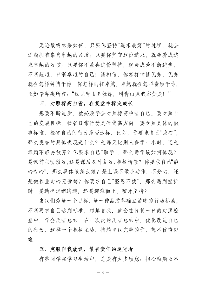 高一秋季学期期末考试总结表彰大会,副校长发言:以行动赴梦想,以拼搏铸荣光老师们、同学们:大家好!首先要向大家通报一个好消息:本次高一上学期期末考试,我们年级整体取得了优异成绩!这不仅是对大家一学期辛勤付出的最好回报,更预示着我们这一届学子有望在x学校的发展史上,书写下光辉灿烂的一页。但这份荣光能否持续,未来能否再创佳绩,还有几个关键问题,我想和大家认真聊一聊。一、让梦想扎根行动,用奋斗定义青春应该承认,我们身边不少同学都怀揣着对未来的美好梦想一一考上理想的大学、成为更优秀的自己。但遗憾的是,还有部分同学的梦想仅仅停留在“想”的阶段,远远没有落实到追逐梦想的实际行动中。我们正处在活力四射的青春年华,这样的年华本该用来逐梦、用来拼搏、用来燃烧,绝不是用来荒废的。懒散度日是一种荒废,把时间浪费在无意义的消遣中,同样是一种荒废。当你能为了梦想早起晨读、深夜刷题,为了攻克难题废寝忘食、发奋努力时,你会发现自己远比想象中更了不起:曾经不敢奢望的成绩,竟然能够达成;曾经需要仰视的“学霸”,如今自己也能成为。要知道,生命的价值在于奋斗,就像金钱的价值在于流通1