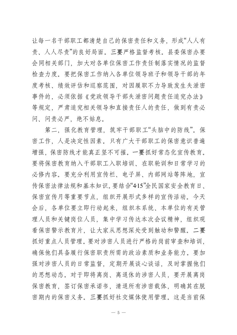 在XX县学校保密工作专题会议上的讲话同志们:今天,我们在这里召开全县学校、医院、企业保密工作专题会议,主要任务是深入分析当前我们面临的保密工作新形势新挑战,通报近期发生的失泄密典型案例,学习贯彻上级有关保密工作的法规文件精神,研究部署下一阶段重点工作,进一步统一思想、压实责任,动员各单位、各部门共同努力,坚决筑牢新时代下的保密安全防线。刚才,我们共同学习了我市部分单位发生的失泄密和严重违规案例,以及《党政领导干部失泄密问题责任追究办法》和微信保密管理的相关文件精神。这些案例教训深刻,发人深省,为我们敲响了警钟。参加今天会议的,有教体、卫健、发改等行业主管部门的负责同志,也有我们县产业集聚区和各重点学校、医院、企业的管理人员,共计70余人。大家都是各自单位保密工作的具体组织者和责任人,肩负着守护国家秘密和重要工作信息安全的神圣使命。希望通过今天的会议,能让大家对保密工作的极端重要性有更清醒的认识,对潜在的风险隐患有更深刻的洞察,对下一步如何抓好工作有更明确的方向。下面,我讲三点意见。一、认清形势,正视问题,深刻把握新时期保密工作的极端重要性和紧迫性保密工作历来是党和国家的一项极端重要的工作,直接关系到国家安全、社会稳定和经济发展大局。进入新发展阶段,国际国内环境发生深刻复杂变化,科技革命日新月异,信息技1