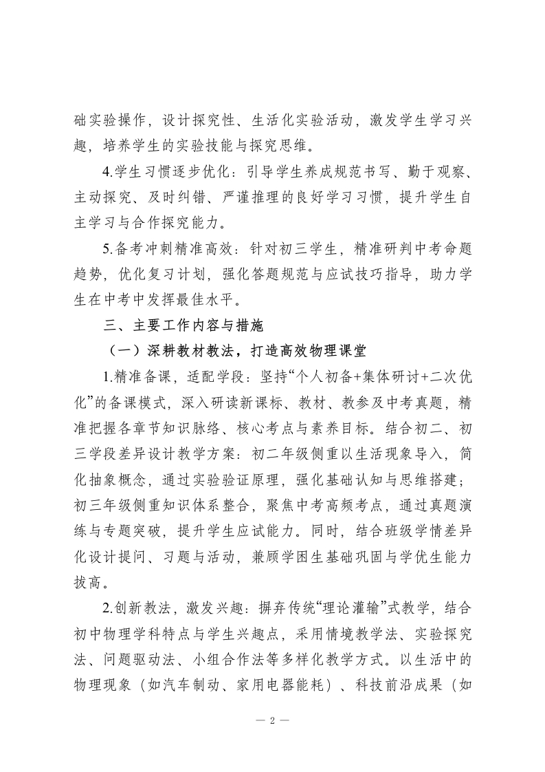 2025-2026学年春季第二学期初中物理教师工作计划:实验赋能启心智,精研教学筑根基此内容为付费资源,请付费后查看