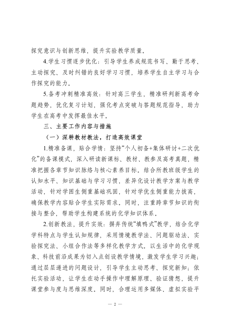 2025-2026学年春季第二学期高中化学教师工作计划:深耕实验育素养,精研教法助攻坚此内容为付费资源,请付费后查看