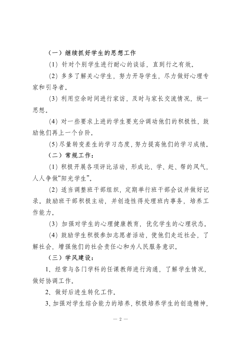 高一下学期班主任工作计划:夯实成长根基,共育向上班风新学期伊始,为了进一步引导班级学生走上正确的思想、学习道路,在各方面得以健康的发展,充分挖掘学生的智慧潜能,培养奋发向上的班风,现制定本学期工作计划如下:一、班级情况分析从上学期的各方面情况来看,本班总体还是不错的,班风积极健康,学生团结向上,班干部的工作能力有很大提高,大部分学生已经逐渐养成良好的学习习惯,但是仍不排除少数学生自控力较差,学习目的不明确,学习效率低,成绩非常差。本学期仍应进一步培养学生良好的学习习惯,教育个别学生进步,大胆放手让学生自己干力所能及的事,并做好组织引导工作,最大限度的营造一个团结,积极,先进的班集体。二、本学期目标:1、进一步培养良好的行为习惯和学习习惯。2、巩固良好班风,完善班级管理制度,凝聚、挖掘班级各方力量,提高班级整体水平。3、加强学风建设,培养学习兴趣,明确学习重要性,注重学法指导,提高学习效率。4、做好学生尤其是男生的思想工作,建立良好的新型师生关系。三,具体措施-1