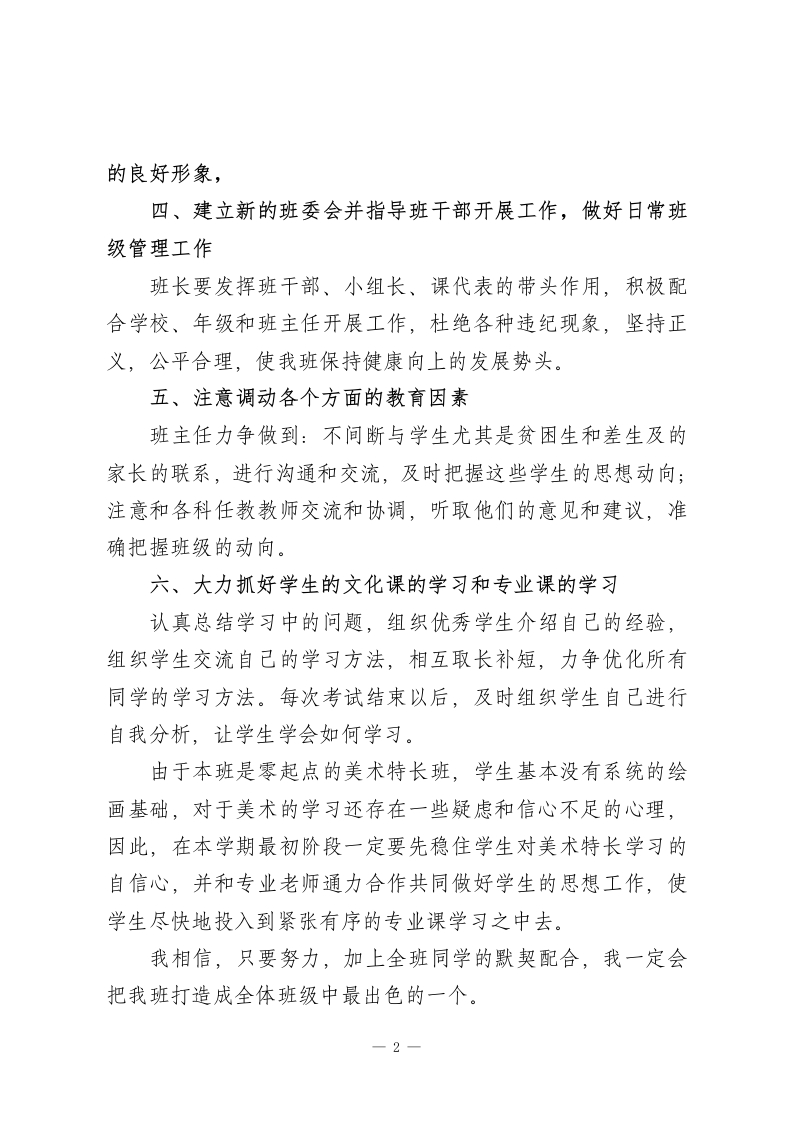 高一下学期班主任工作计划:文艺双优,筑梦青春为搞好新学期的班级管理工作,现将这学期的班主任工作大体工作安排如下:一、认真建立班级规章制度和班级考核制度,使学生自己规范自己的行为,把学校要求内化为本班学生自觉的行动。本学期我担任刚成立的美术特长班的班主任,学生分别来自9个班级,学习层次、学习能力、自我控制能力、学生之间还磨合等等都相对较差,尤其在学习态度上,需要长时间的引导,努力提高他们的自学能力,自信能力,让他们保持积极的、昂扬向上的学习态度,建立了班级规章制度,力争提高班级规章制度对学生的约束力和学生自觉遵守班级规章制度的习惯。二、继续做好促优转差工作对于优秀生了解他们存在的问题,既包括学习也包括生活,进一步提高他们的文化课成绩、尽快地培养起他们对专业课的兴趣并努力提高他们的专业课成绩;对于差生多找他们他们谈话,认真了解他们内心思想的变化,寻找思想上的闪光点和开展思想工作的突破口,鼓励他们赶上去;特别是对贫困生,做好他们的思想工作,使他们丢掉包袱,轻装前进,努力思想人生价值,不为眼前暂时的困难压倒。三、继续树立和培养学生的集体主义观念和主人翁意识,心胸开阔,顾全大局,让学生自觉地维护集体荣誉,树立我班一1