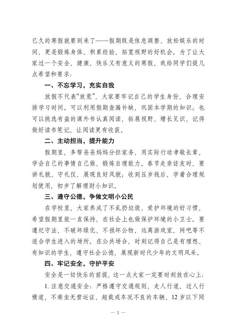 秋季第一学期休业式小学校长讲话:总结成长,安全快乐过寒假此内容为付费资源,请付费后查看