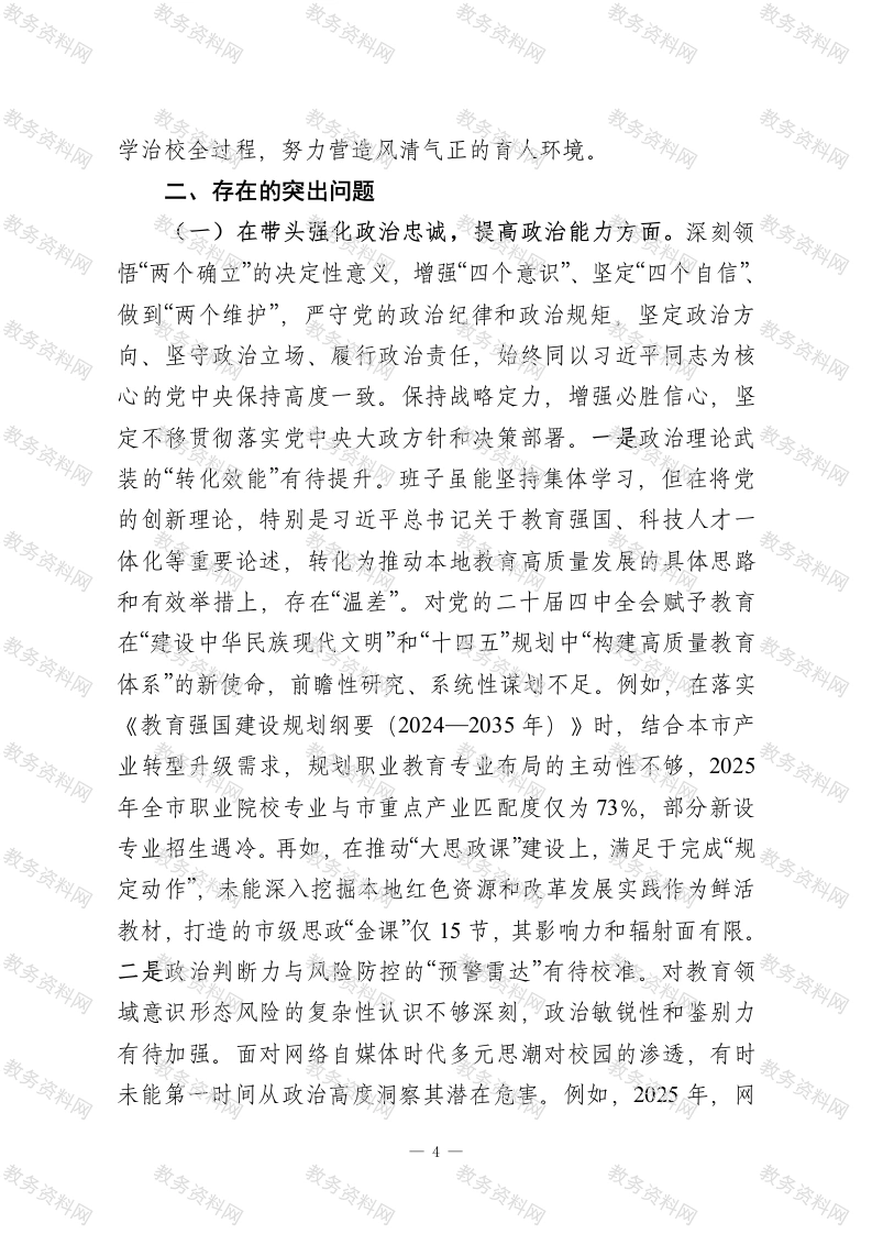 市教育局2025年度民主生活会领导班子对照检查材料此内容为付费资源,请付费后查看
