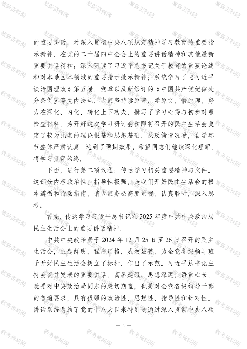 在市教育局班子2025年度民主生活会会前学习研讨会上的讲话此内容为付费资源,请付费后查看