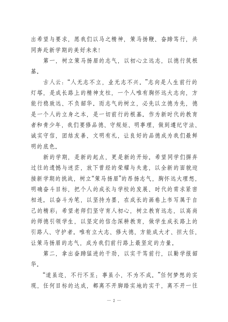 2026年春季开学典礼校长讲话:策马扬眉立远志,奋蹄笃行创未来此内容为付费资源,请付费后查看