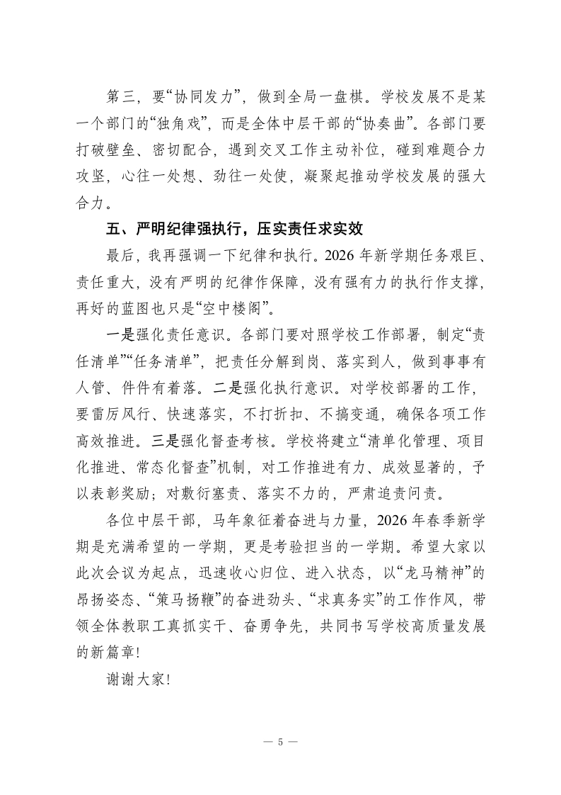 2026年春季新学期开学前中层干部会议,校长讲话:龙马扬鞭启新程,实干担当提质效此内容为付费资源,请付费后查看