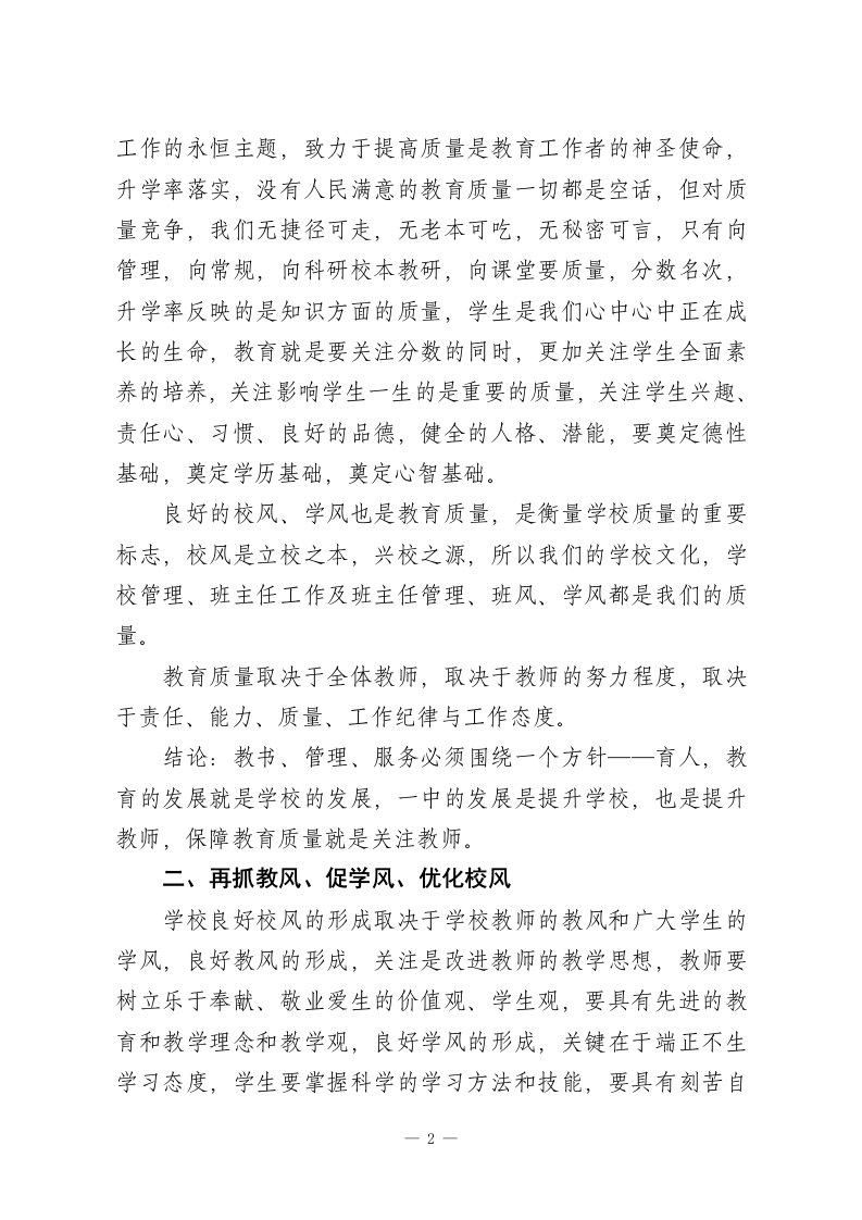 分管教学副校长,新学期教师会议讲话质量第一是各项工作的主旋律和永恒主题,任何人都不能掉以轻心此内容为付费资源,请付费后查看