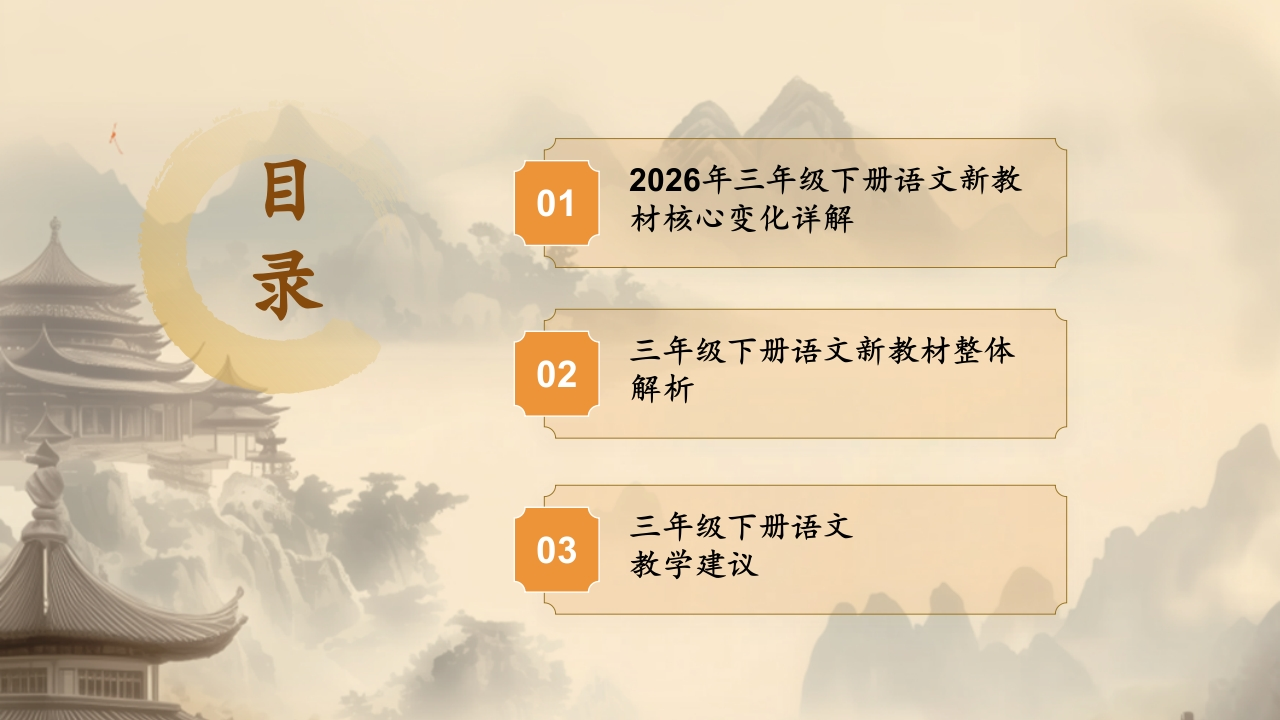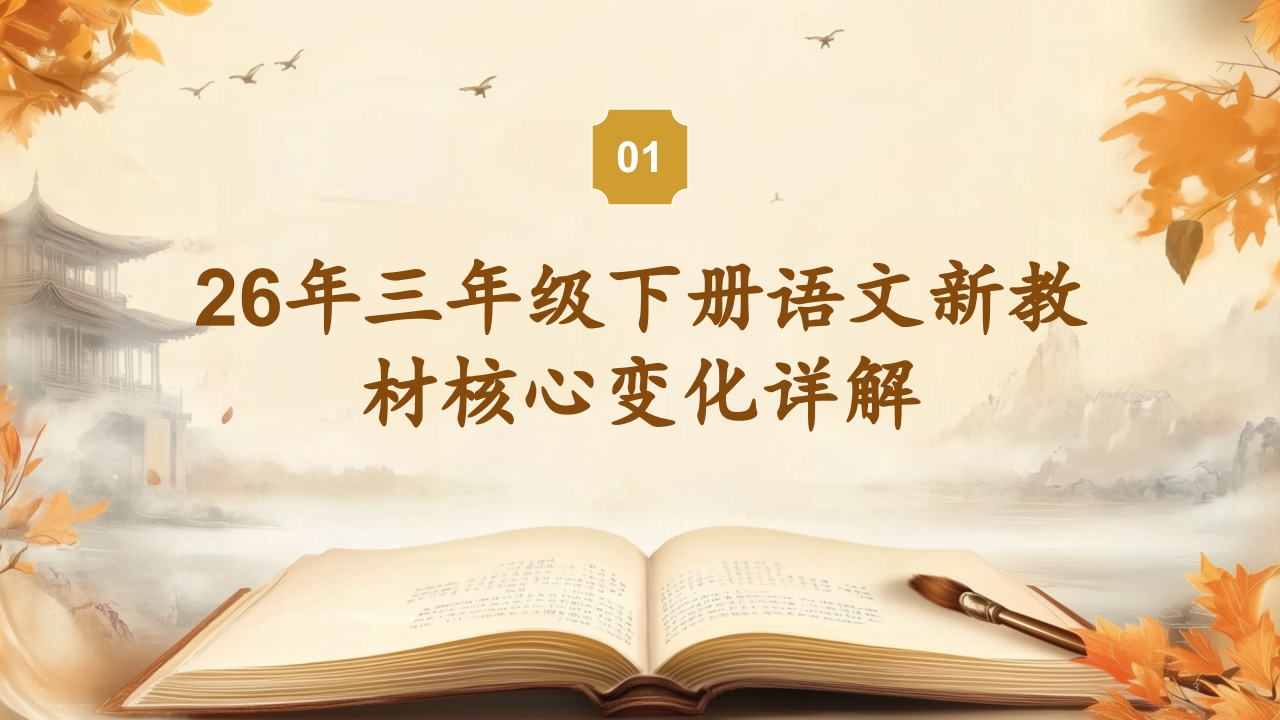 【三年级】【语文】【春季下】2026年教材整体解读:深耕新教材,把握新航向tangqi888小时前发布关注私信19.31MB34页0486 第1页 / 共34页 第2页 / 共34页 第3页 / 共34页 第4页 / 共34页 第5页 / 共34页 试读已结束,还剩29页,您可下载完整版后进行离线阅读 【三年级】【语文】【春季下】2026年教材整体解读:深耕新教材,把握新航向此内容为付费资源,请付费后查看¥9.9¥19.9VIP会员免费立即购买您当前未登录!建议登陆后购买,可保存购买订单付费资源© 版权声明本站是一个信息分享及获取的平台,不确保部分用户上传资料的来源及知识产权归属,资料由老师投稿,公开渠道整理,网友上传,如果侵犯到您的权益,请联系客服删除THE ENDPPT课件 文本预览 名深耕新教材把握新航向2026年春三年级下册语文教材整体解读XXX2026.03.05 查看更多 收起部分 喜欢就支持一下吧点赞6 分享QQ空间微博QQ好友海报分享复制链接收藏