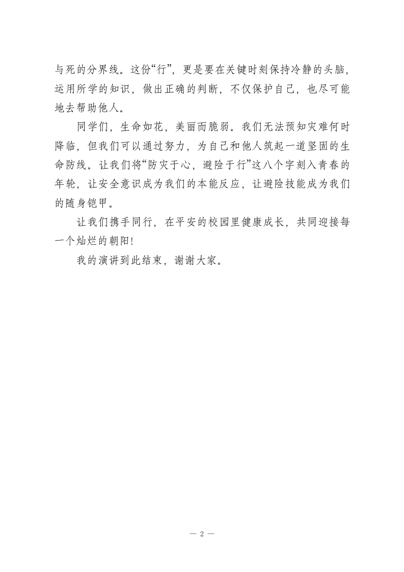 2026年春季学期升旗仪式第11周演讲稿:防灾于心,避险于行此内容为付费资源,请付费后查看