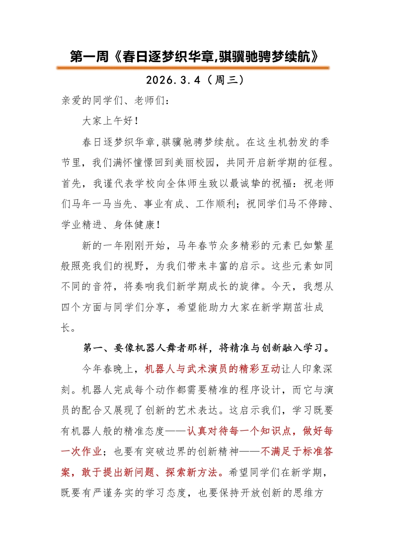 2025-2026第二学期升旗仪式安排表及演讲稿(18周):春日逐梦织华章,骐骥驰骋梦续航此内容为付费资源,请付费后查看